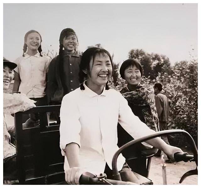 女知青们看起来刚学会开拖拉机,她们兴奋得笑得非常灿烂,享受着劳动带来的成就感。