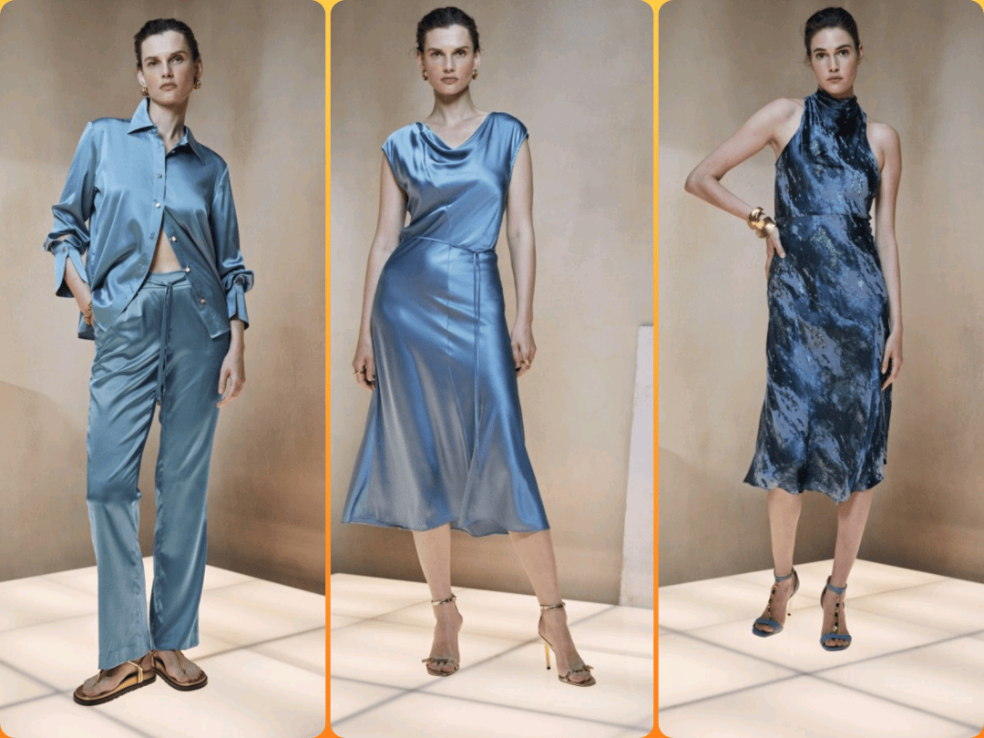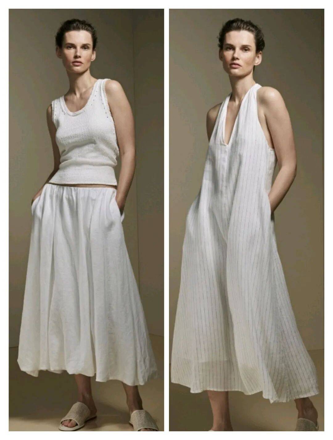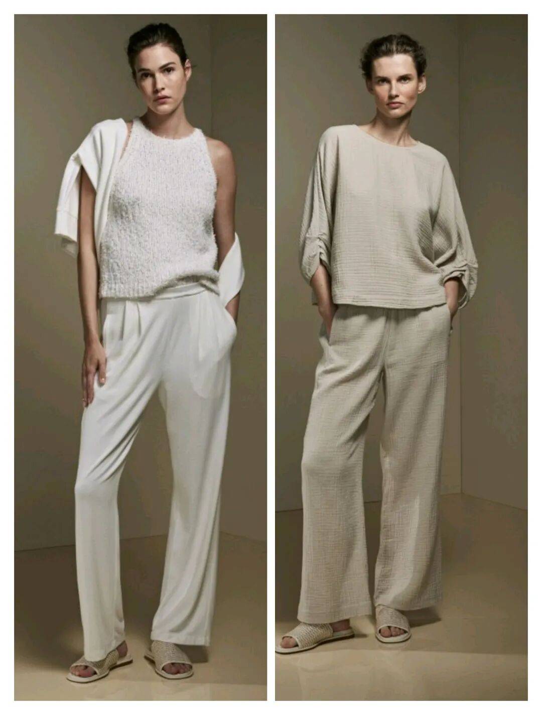 粗粝肌理(针织、压褶棉麻)与细腻光泽(真丝、缎面)交织,形成触觉与视觉的双重层次;
