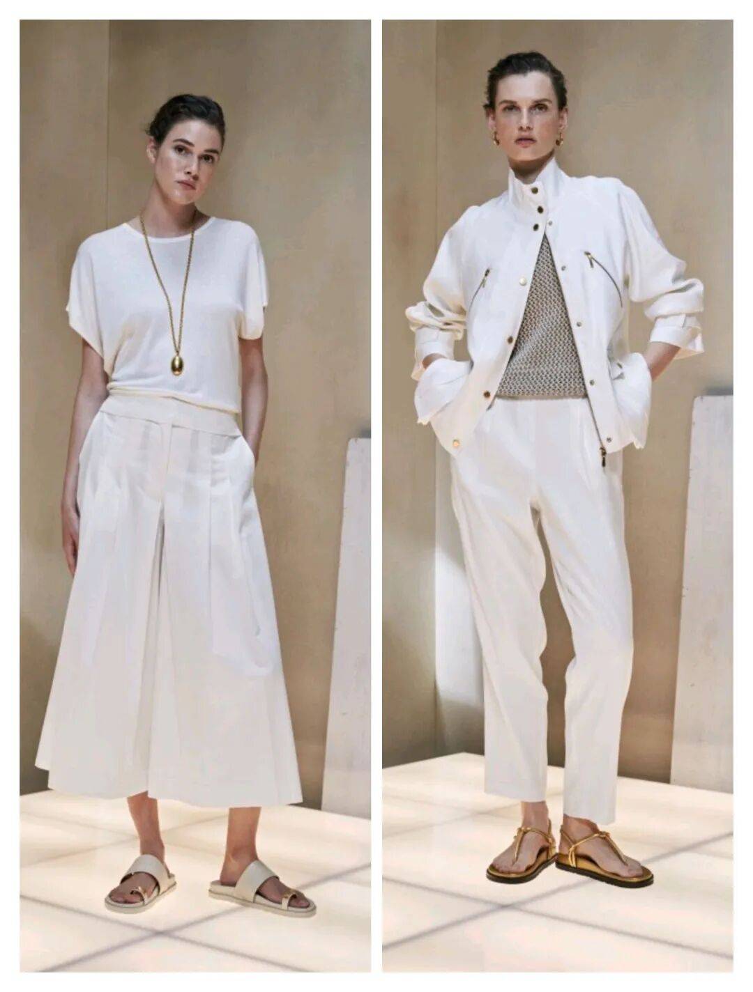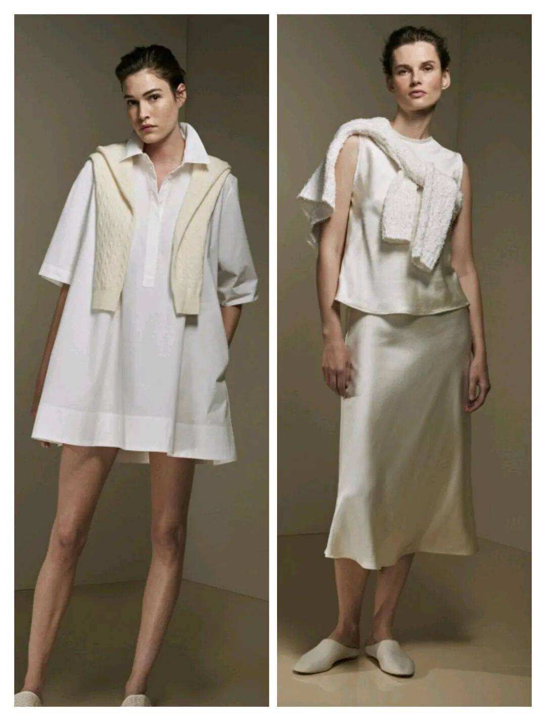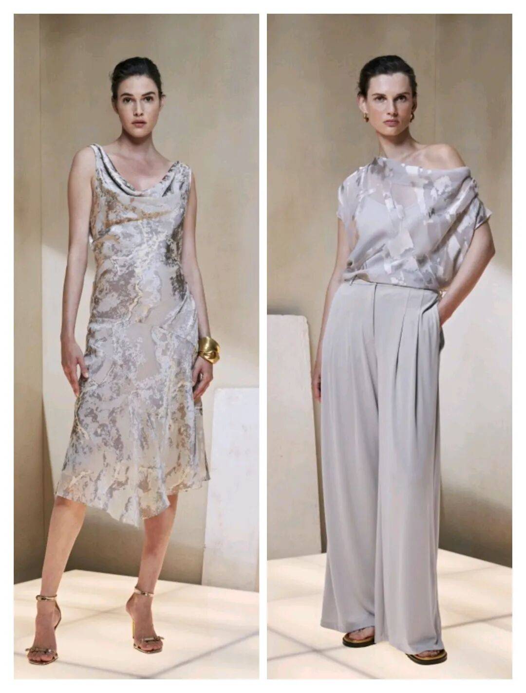 从光泽感连衣裙到纹理感上衣+直筒裤套装,系列单品可自由组合于职场、社交、休闲场景,呼应都市女性多元角色切换的需求。珍珠白针织衫通过系带设计实现昼夜造型转换,体现“一衣多面”的智慧。