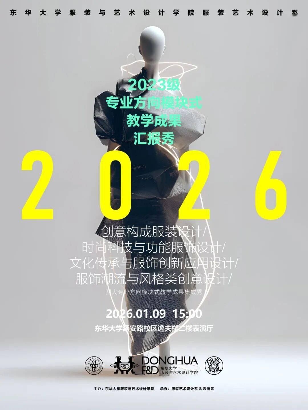 本次教学成果汇报秀是东华大学服装与服饰设计专业低年级教学改革的重要体现,充分展示了本科二年级学生在基础课程中实现创意落地的能力。
