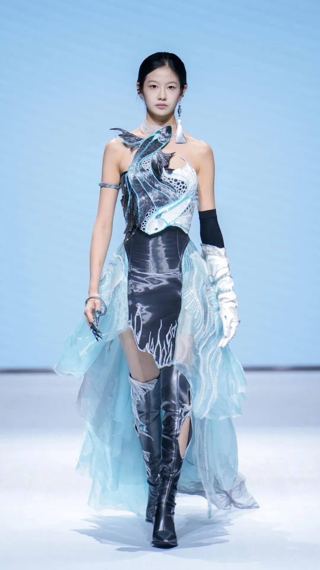 学生围绕线面构成、仿生设计、经典解构、闲置再生等手法展开创作,将抽象概念转化为具象成衣。