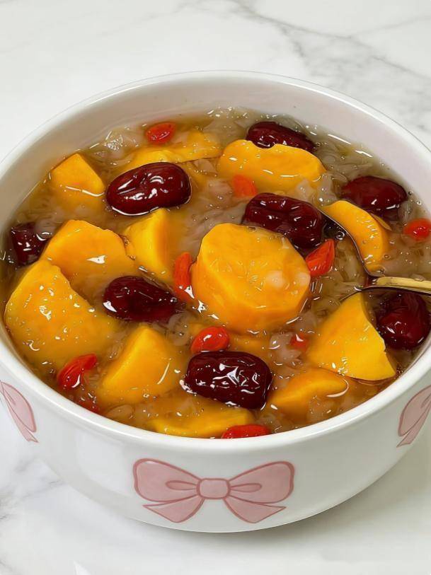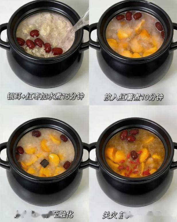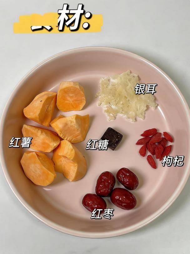 | 红薯银耳羹 | 红薯、银耳、红枣 | 补脾益气、促进肠道蠕动 | 红薯切块与泡发银耳同煮,加红枣调味 |