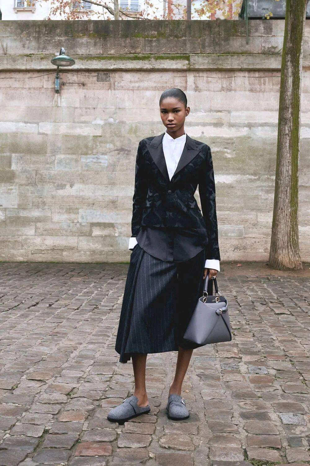 混搭哲学:运动外套配拖地半裙、灯芯绒与牛仔布拼接,模糊正式与休闲界限,诠释多元场景适应性。