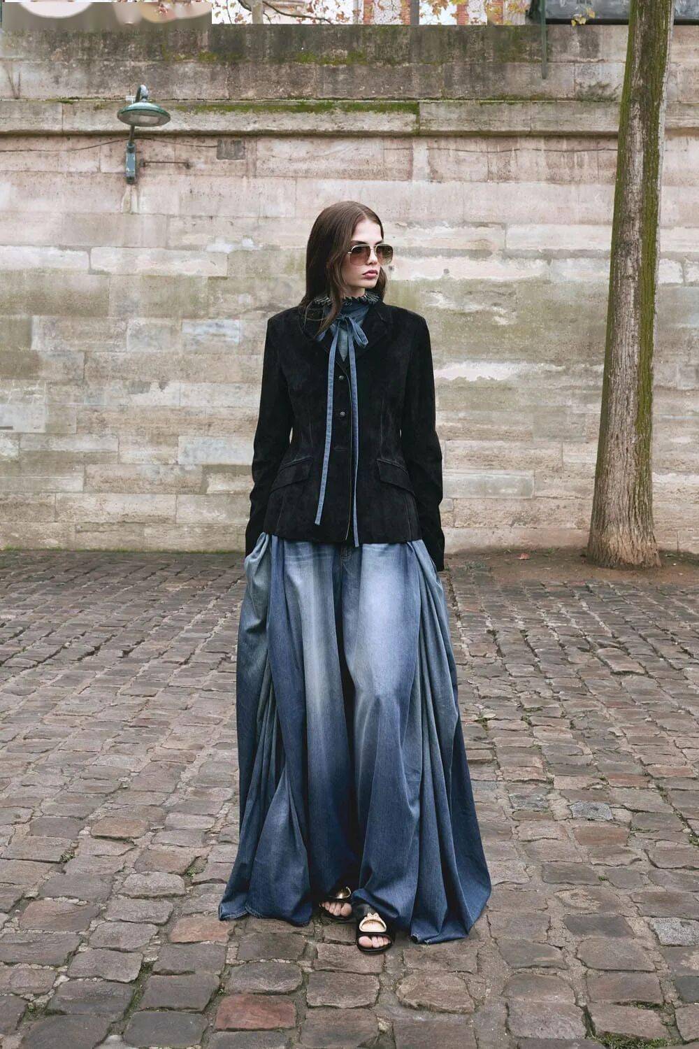 丹宁革命:研发超轻丹宁面料,打造如裙装般的夸张比例牛仔裤,将日常单品提升至高级时装层次。