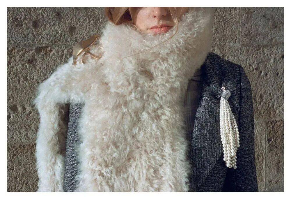 可持续面料:再生羊绒开衫、纯素皮革拼接高领衫,呼应环保理念。