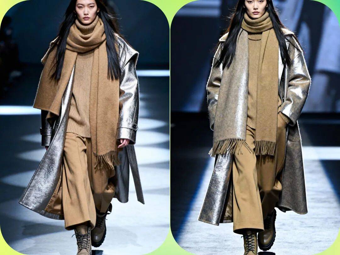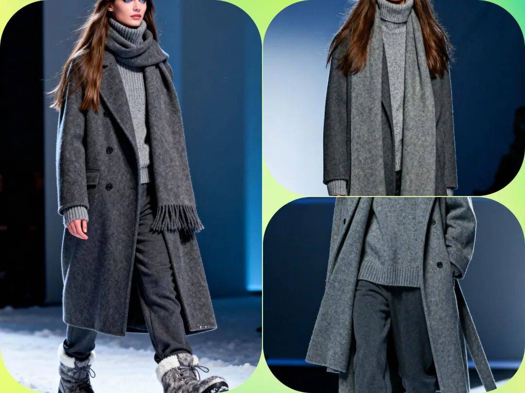 亮点:通过纹理对比(如粗针织围巾+光滑毛呢)增加趣味性。