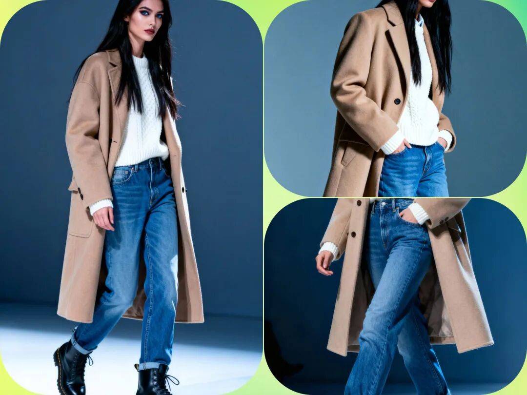 2. 休闲时尚风:毛呢大衣 + 牛仔裤