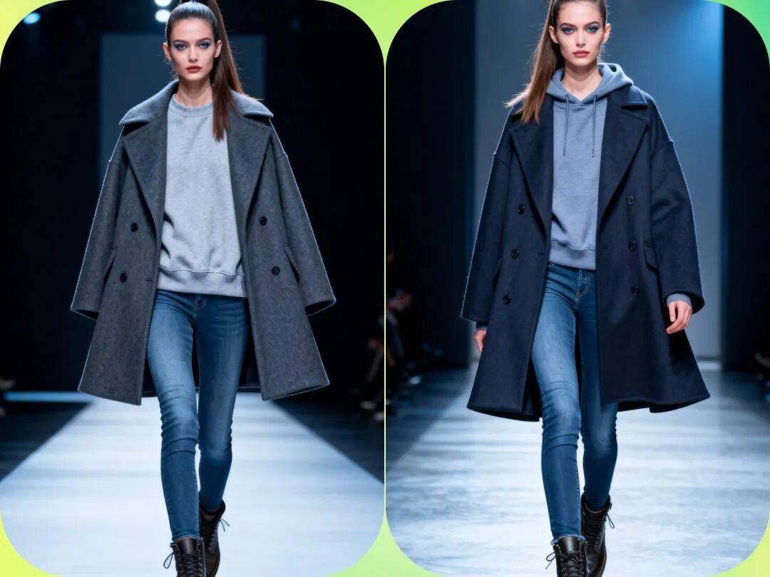 搭配公式:宽松毛呢大衣(O型/A型)+ 卫衣/简约毛衣 + 牛仔裤(直筒/紧身)+ 运动鞋/马丁靴