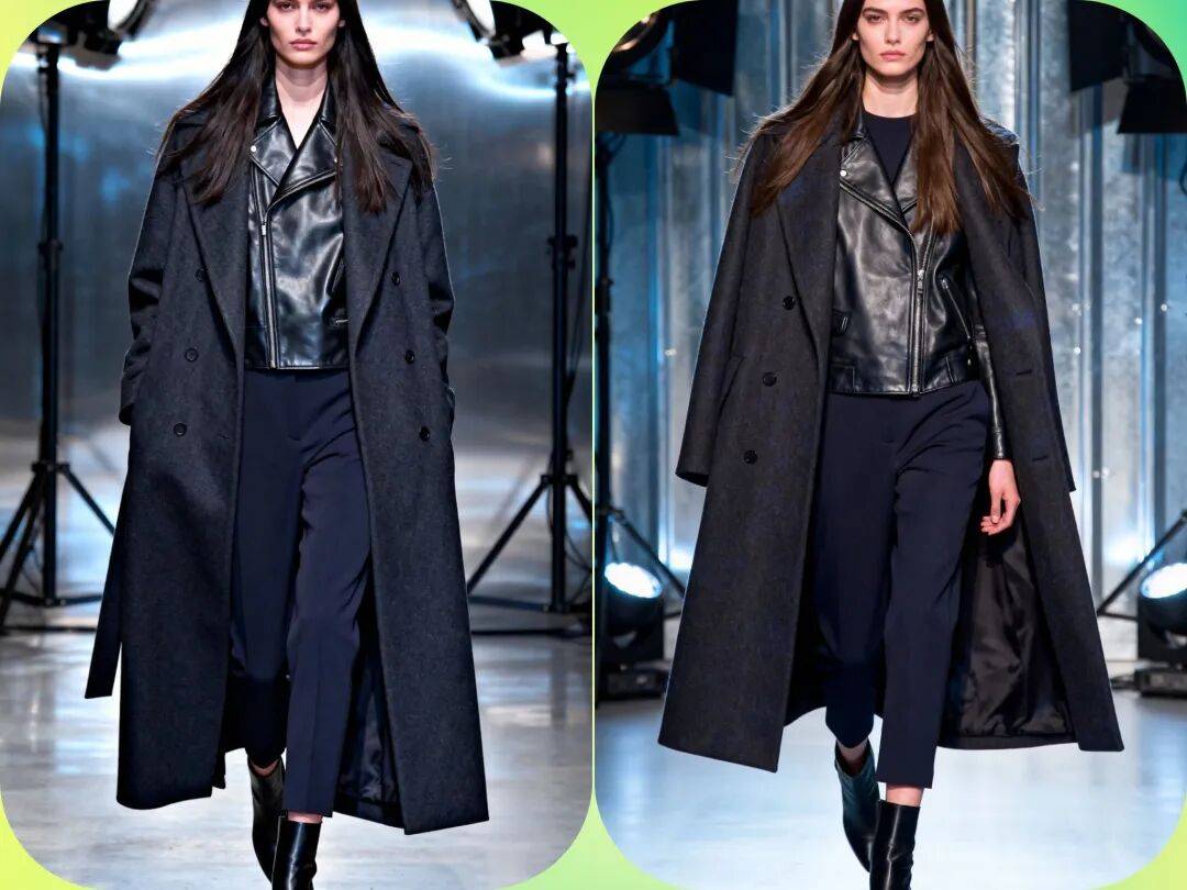 4. 潮流叠穿风:毛呢大衣 + 西装/皮衣