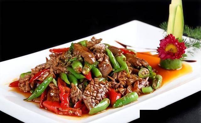 香辣爆炒腰花:图片14(腰花+红绿辣椒+白色盘子)与文字食谱的配料和摆盘高度吻合。