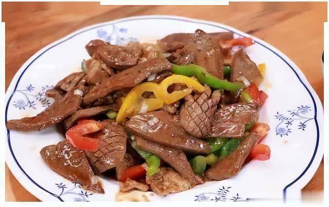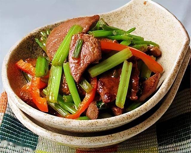 文字食谱:芹菜段+猪肝片+红椒丝爆炒