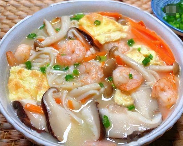 图片13:三鲜菌菇汤(虾仁+煎蛋+菌菇+葱花)