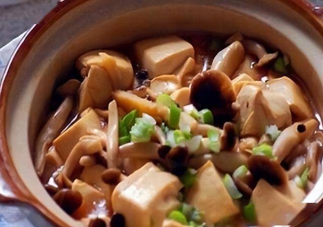 图片10:菌菇豆腐煲(豆腐+菌菇+葱花)