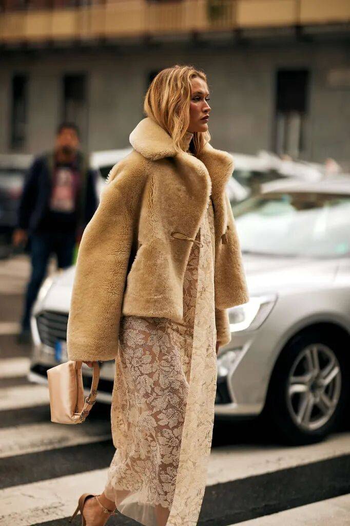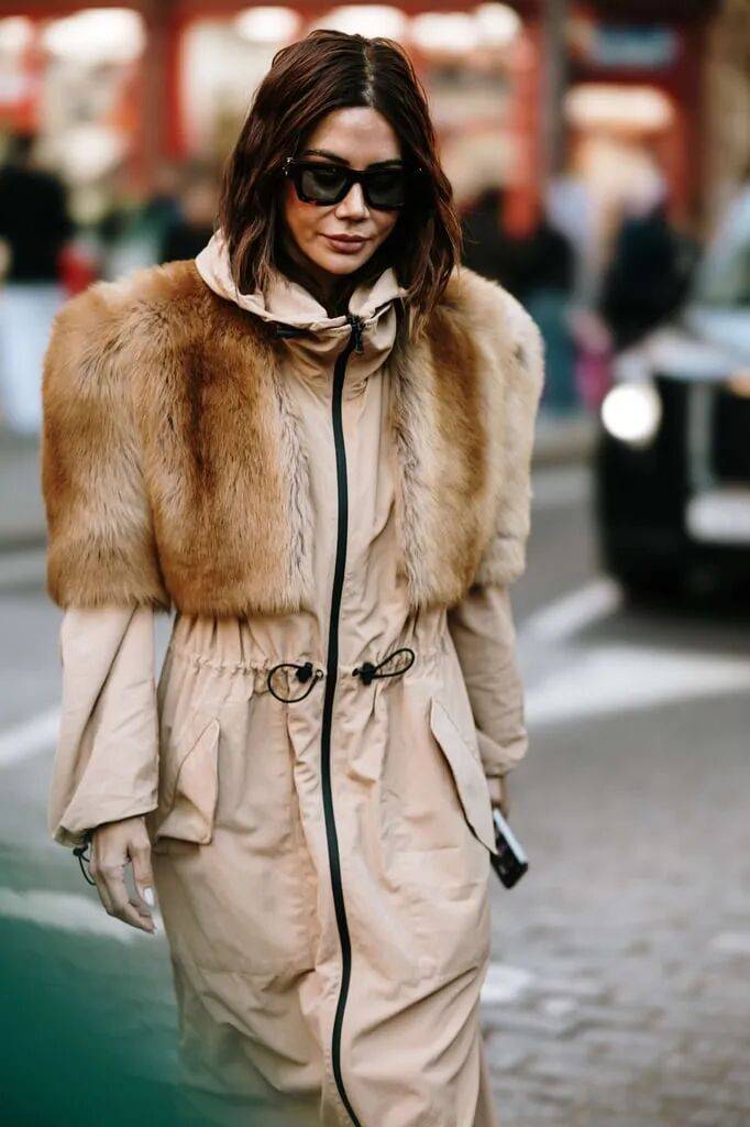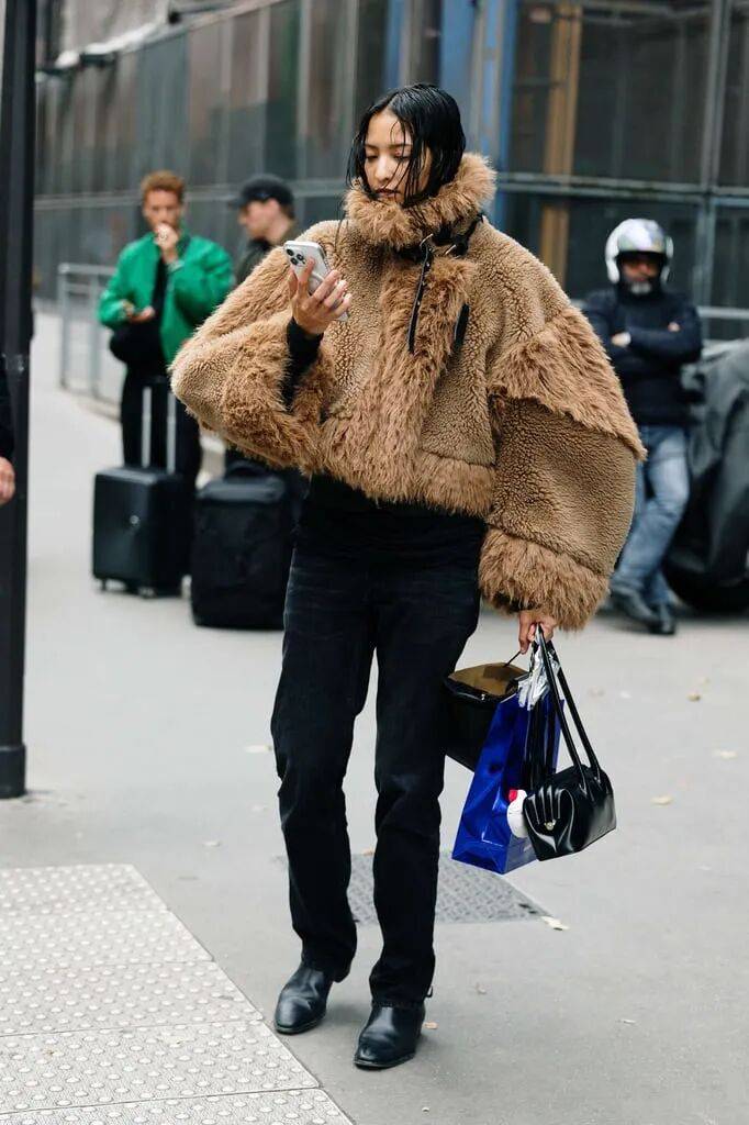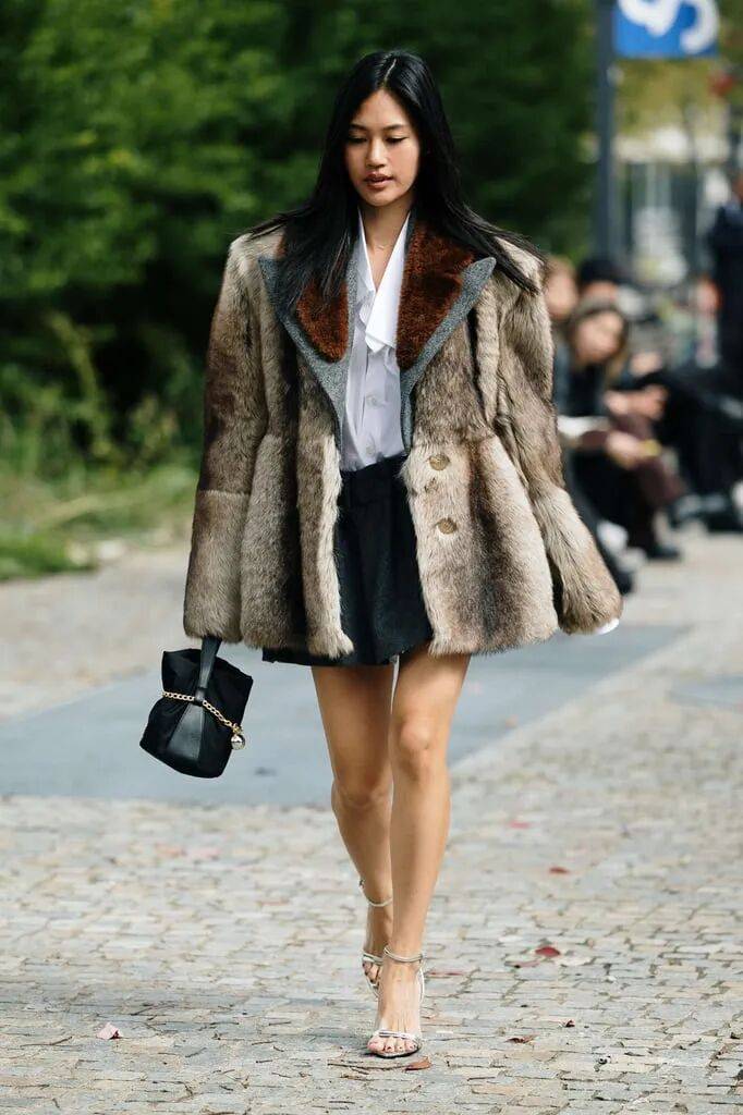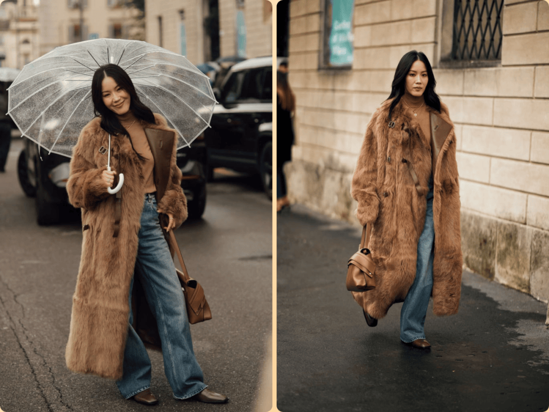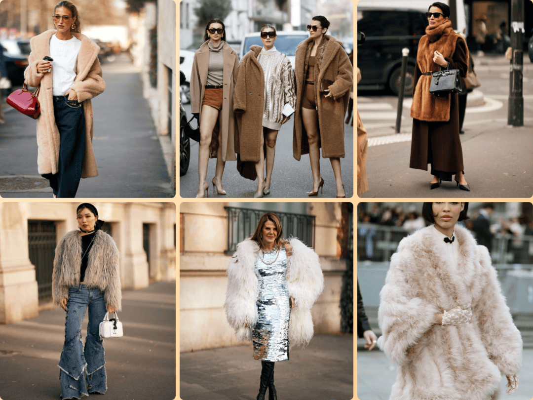 避免全身皮草堆叠,优先选择 单件核心单品(如外套或边饰)