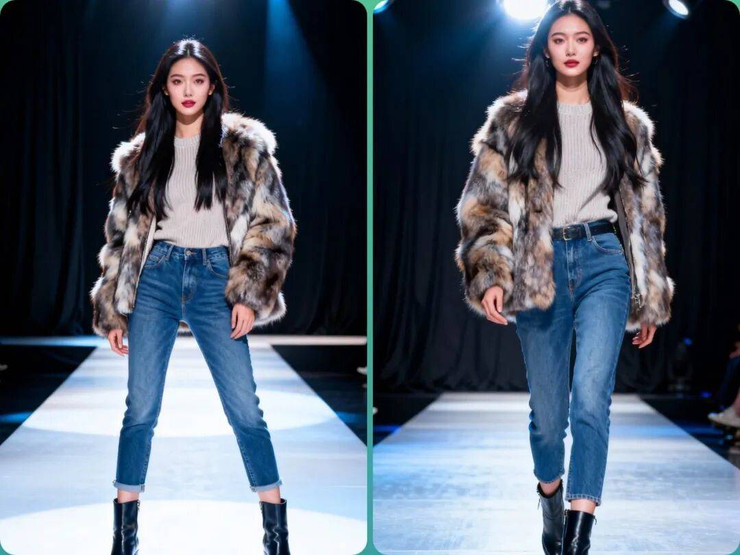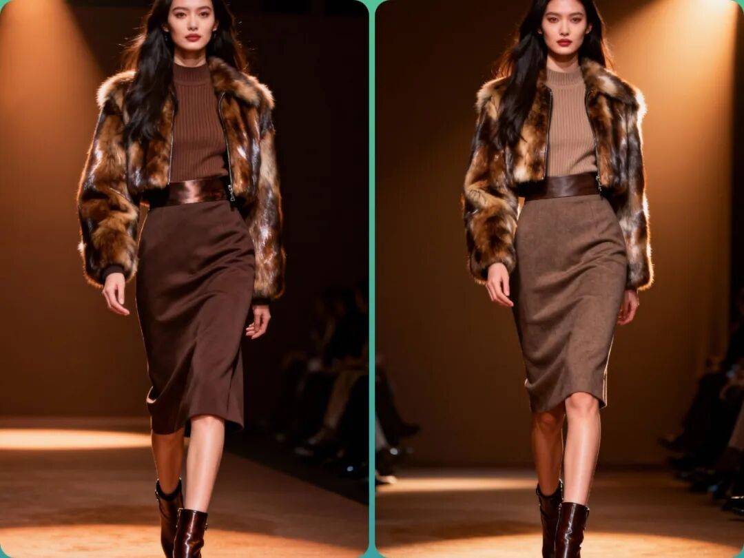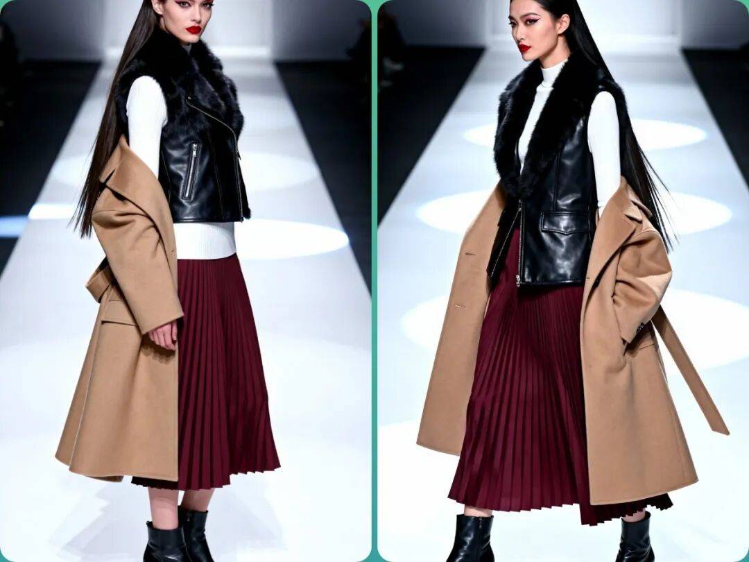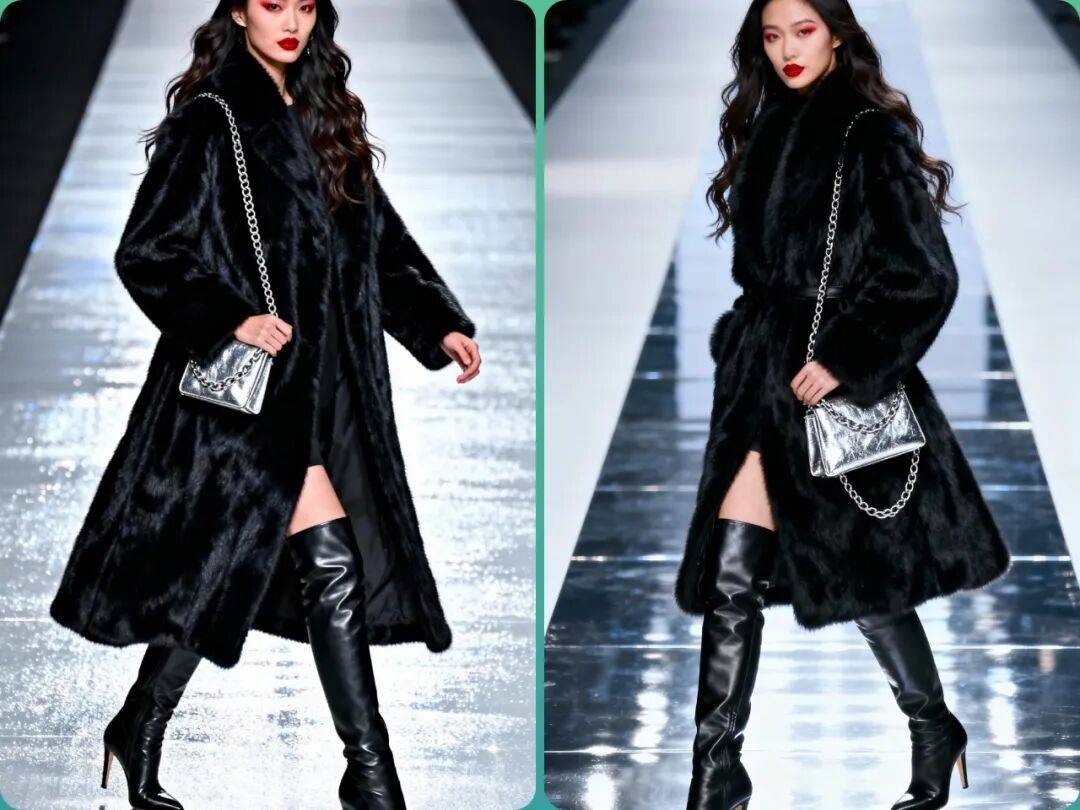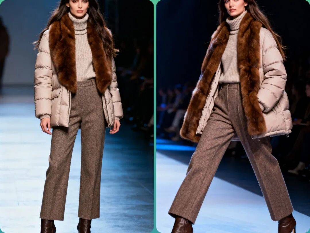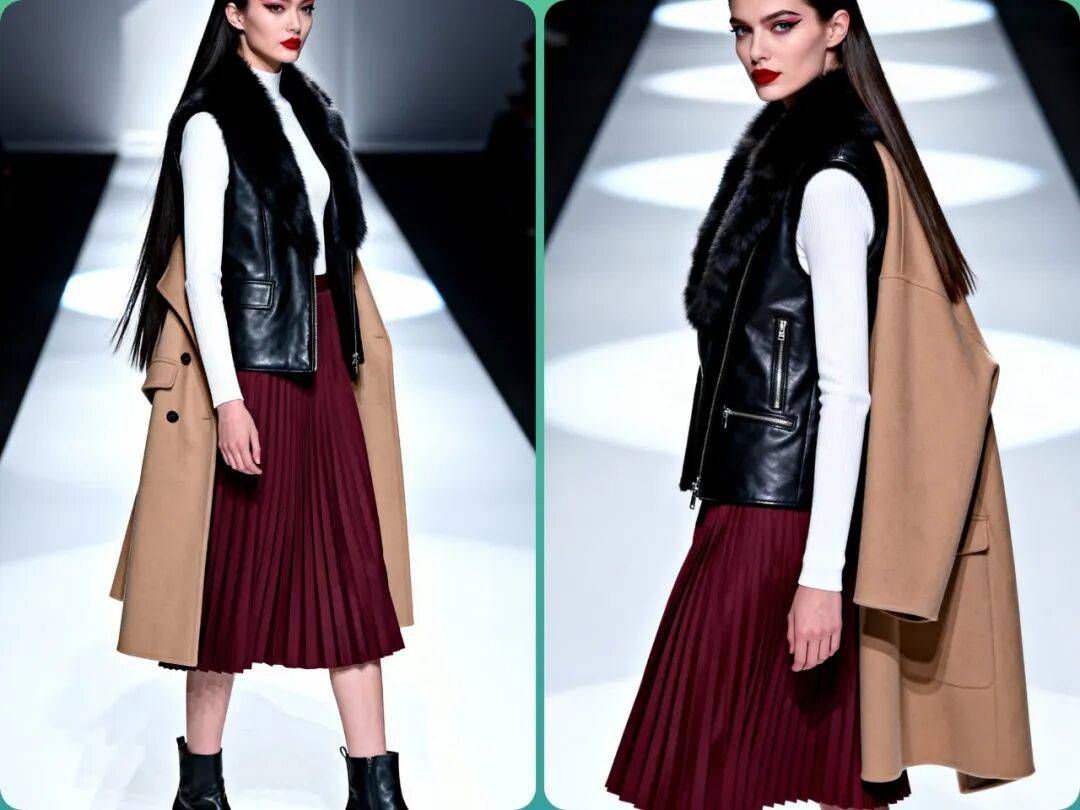 2. 材质创新:环保皮草成为主流,同时设计师们也在尝试与其他材质(如皮革、针织)结合,创造出更具层次感的单品。