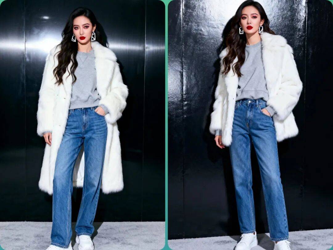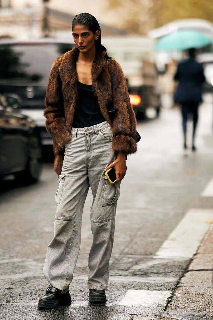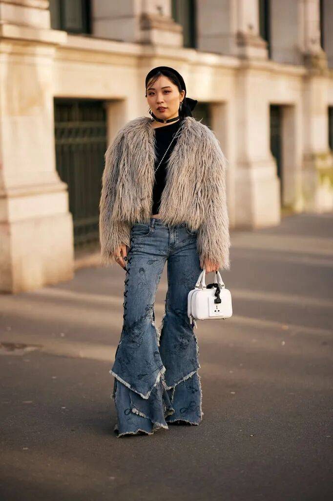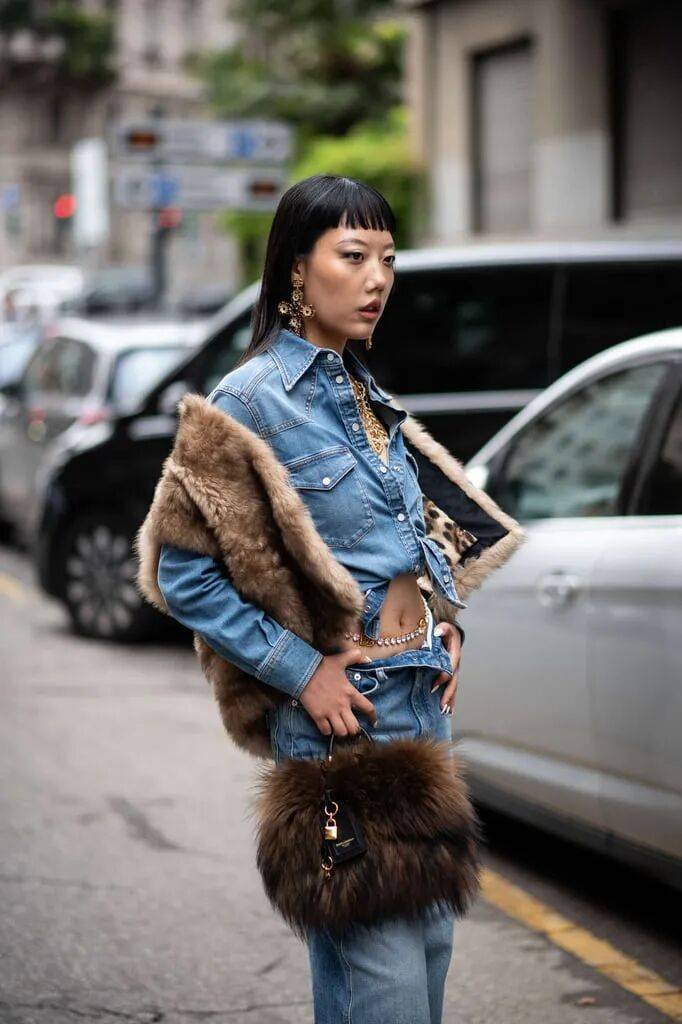皮草+牛仔:粗犷与奢华碰撞,破洞牛仔裤能消解皮草的隆重感