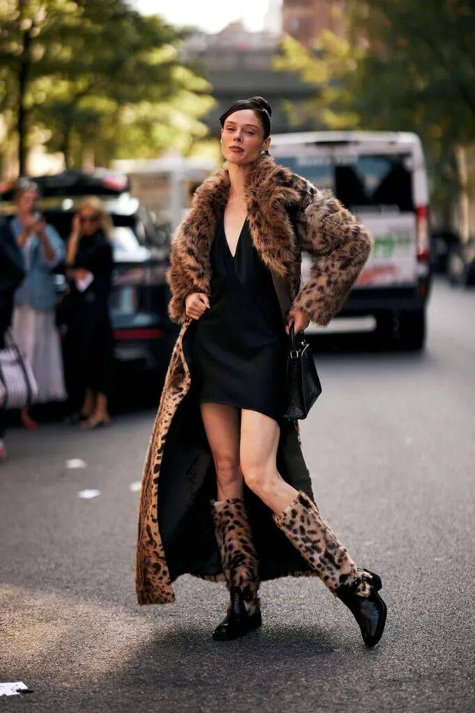 4. 复古回归:上世纪90年代的皮草元素重新回归时尚舞台,如豹纹皮草、拼接皮草等,复古中带着现代摩登感。
