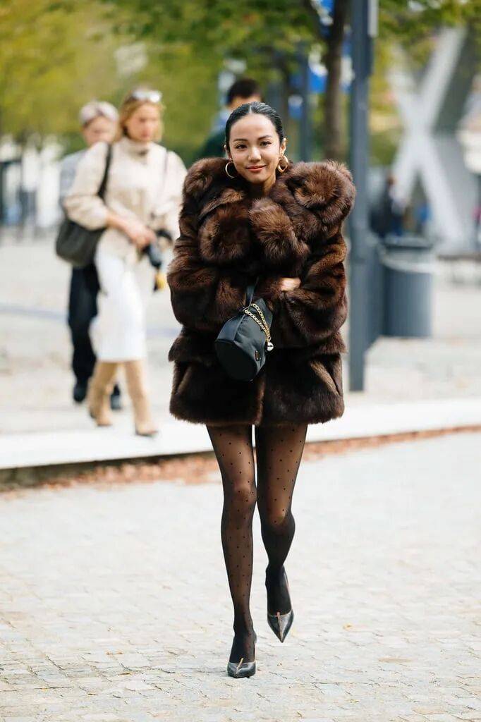 亮点:全皮草造型是冬季最显贵气的搭配之一,瞬间提升整体气场,适合重要场合或晚宴活动。