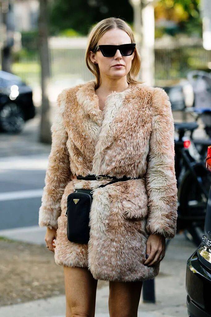 腰带是调整比例的神器,短款皮草+腰带=显瘦显腿长