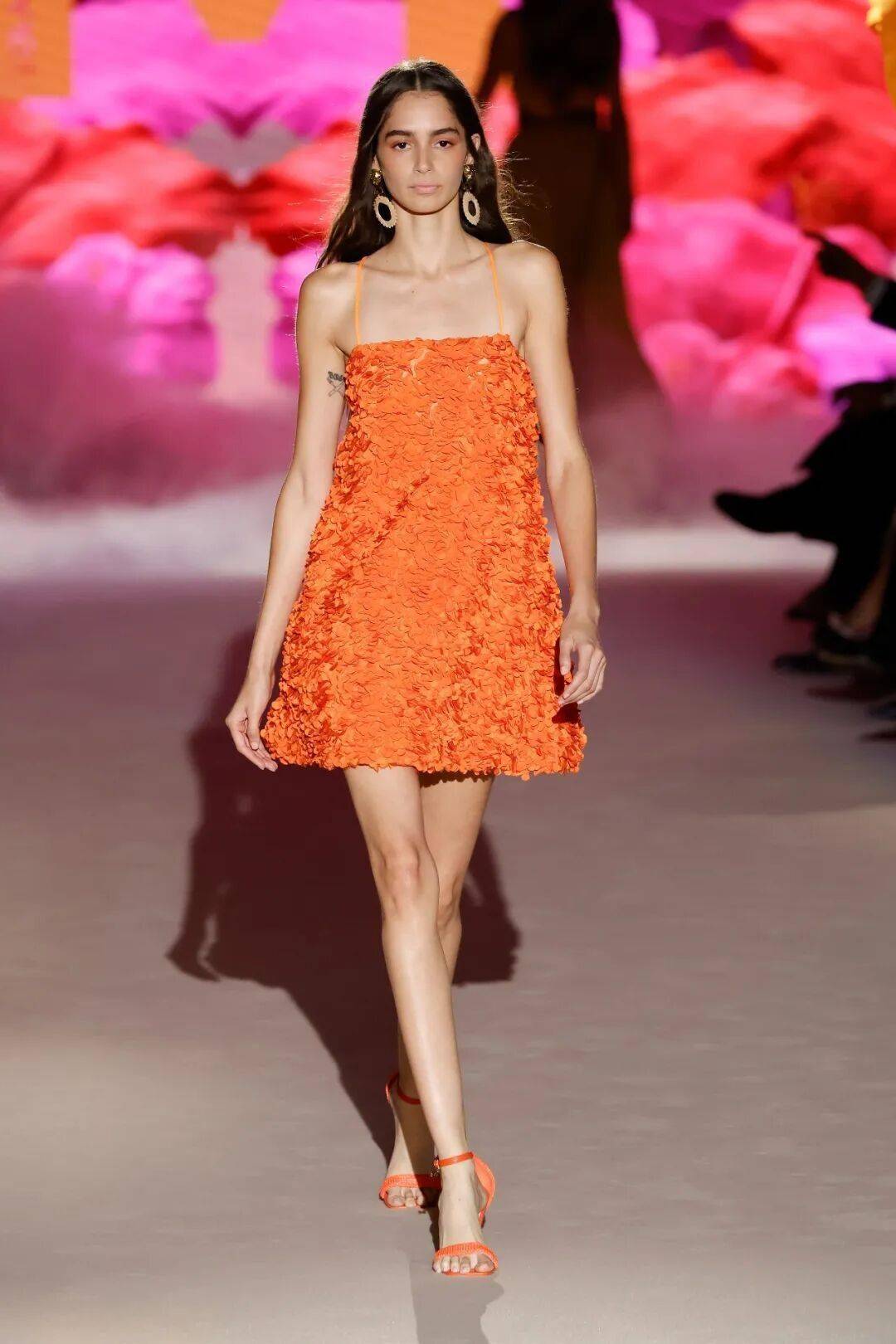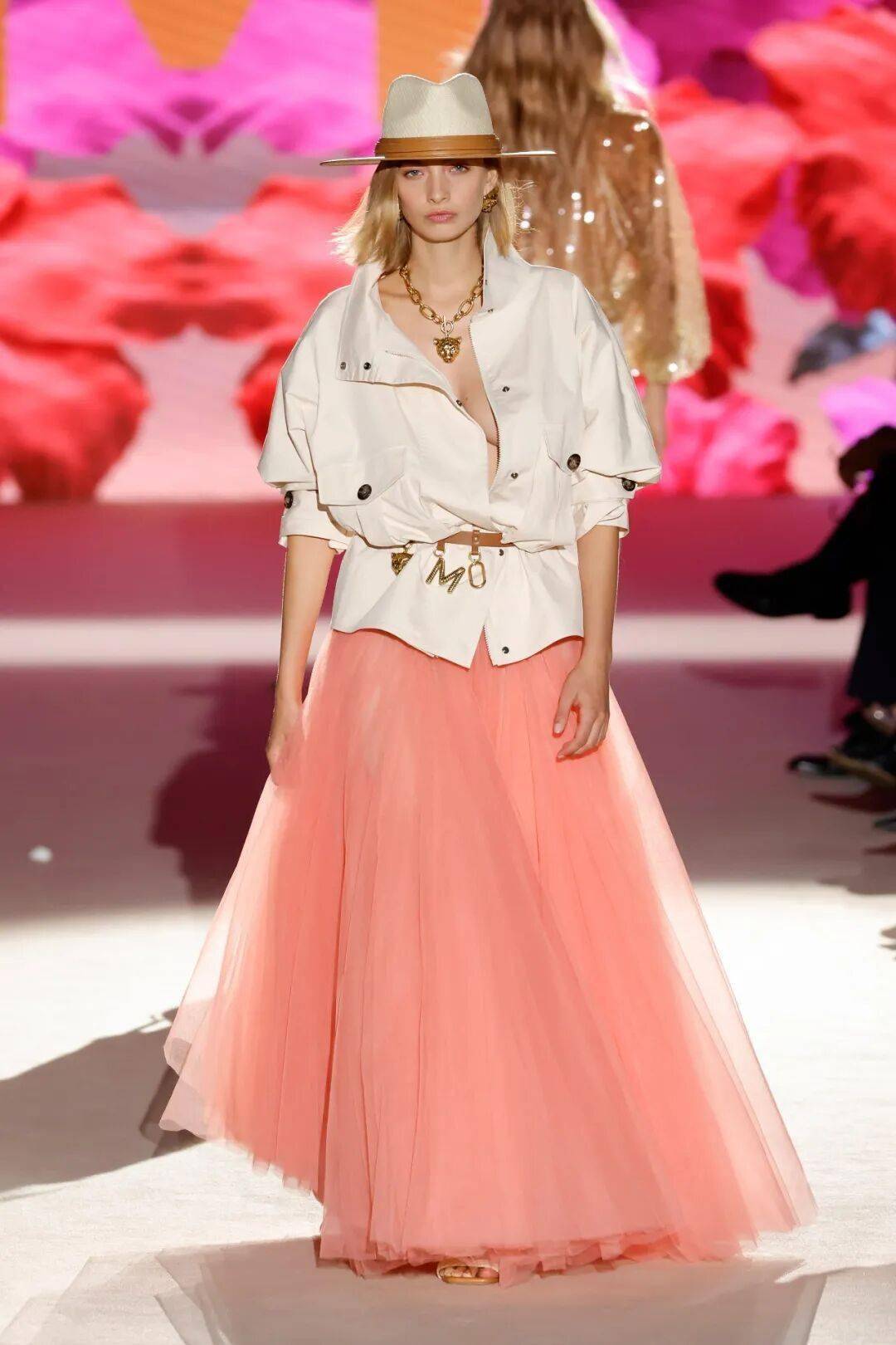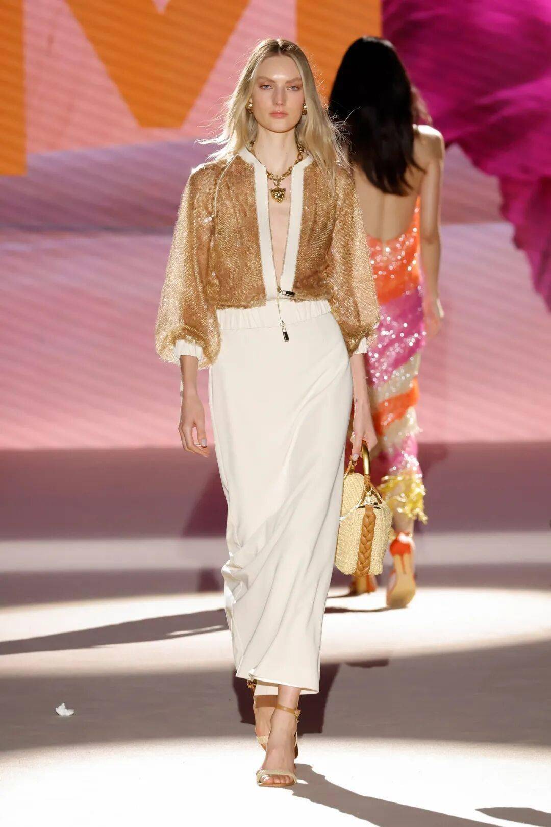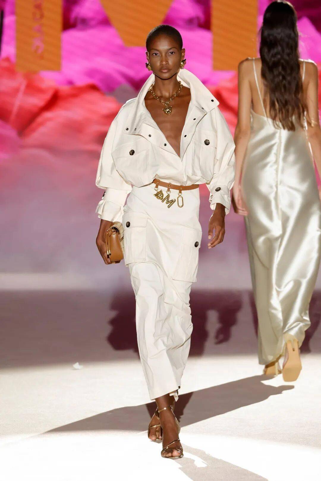 甜瓜橙(Melon Orange):贯穿于丝质衬衫与工装风连体裤,传递活力基调