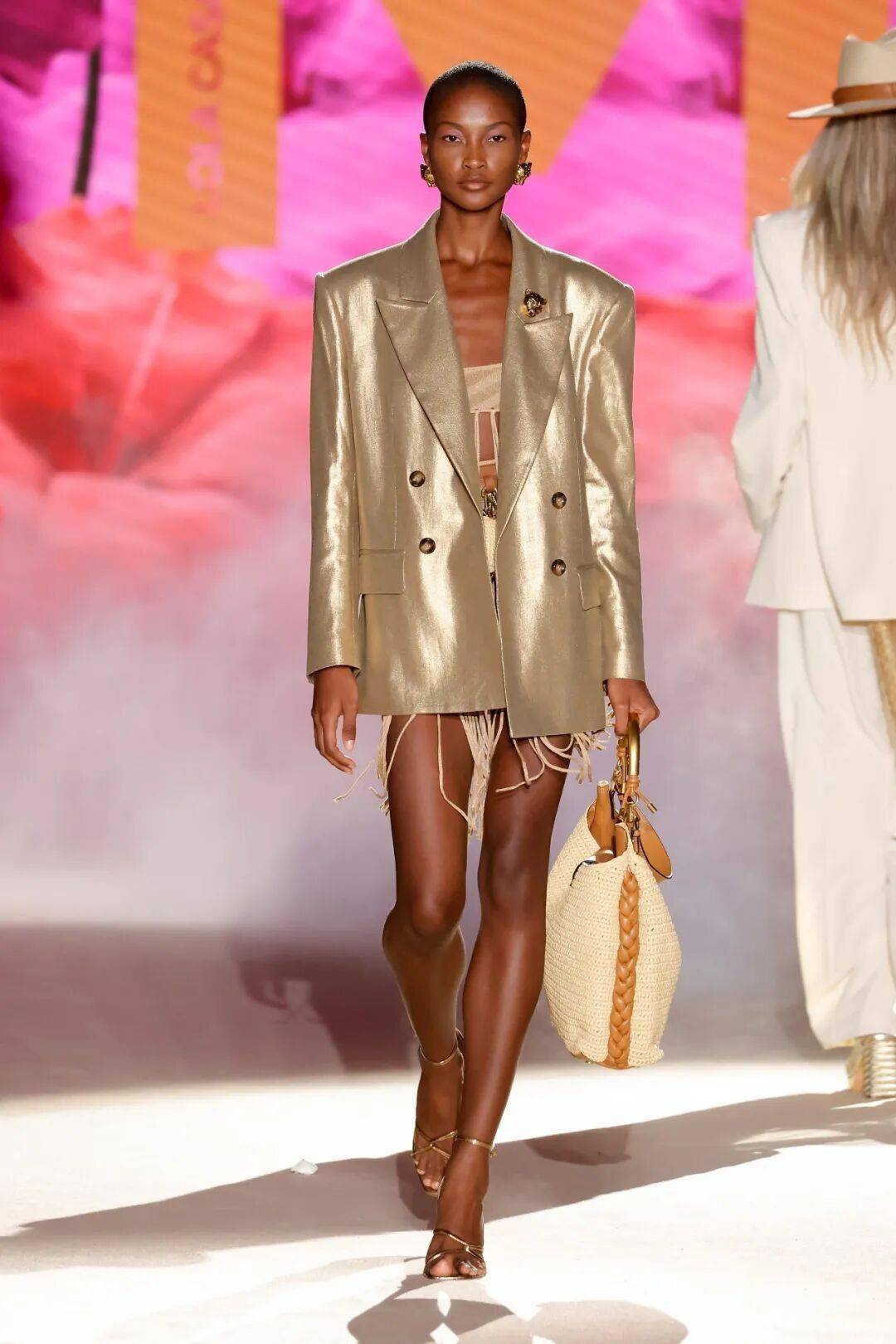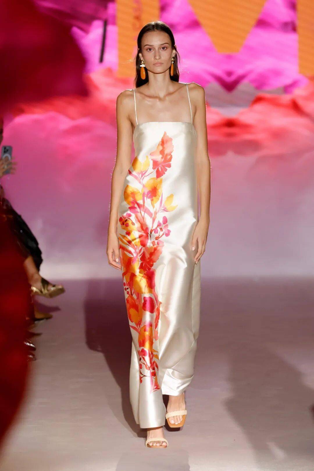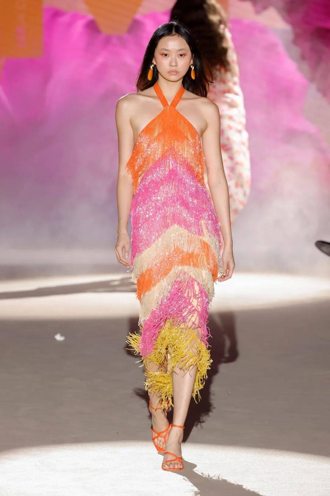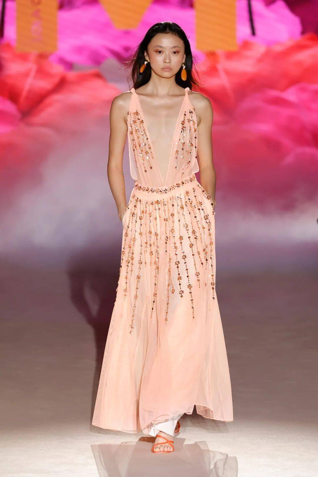 甜瓜橙(Melon Orange):贯穿于丝质衬衫与工装风连体裤,传递活力基调
