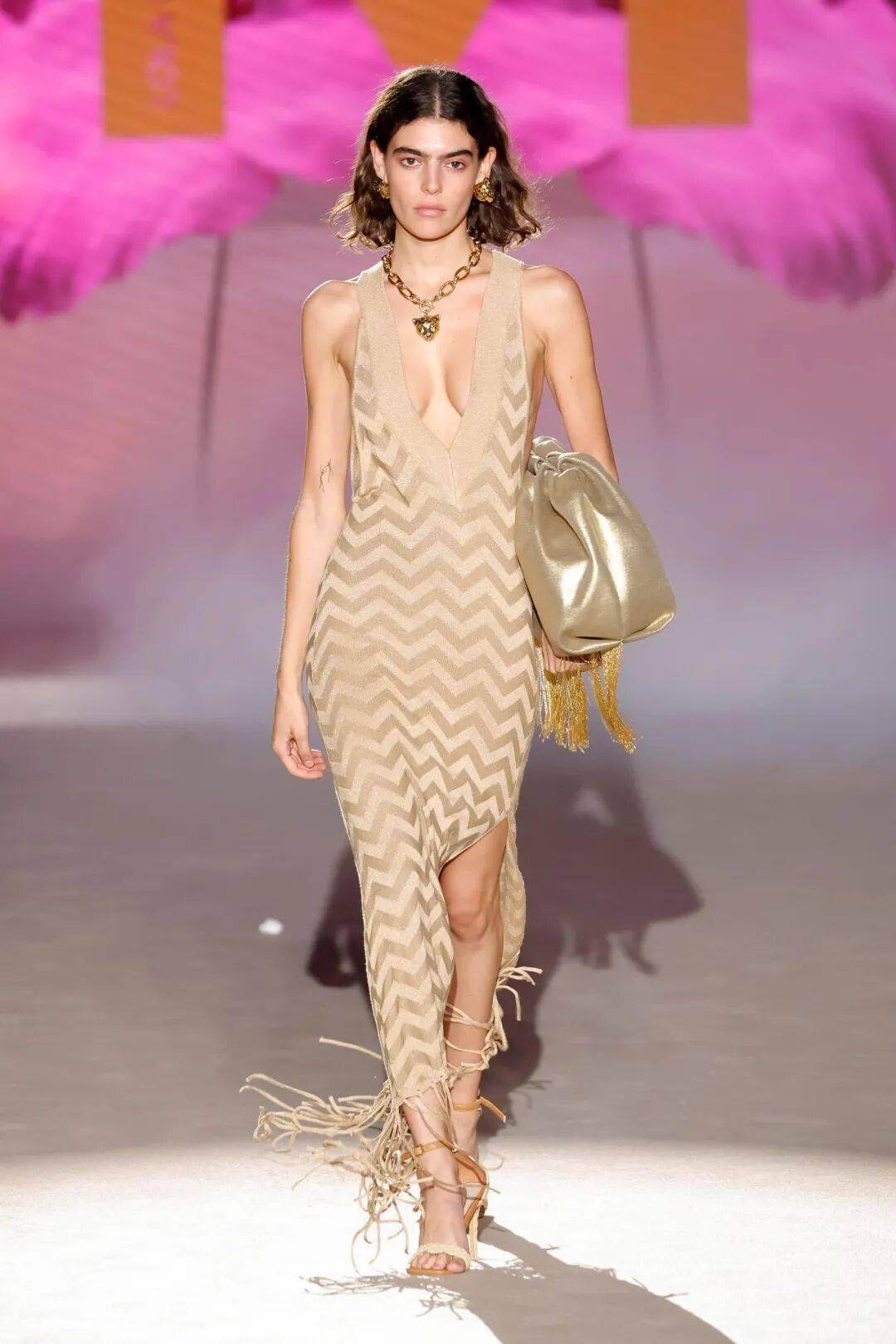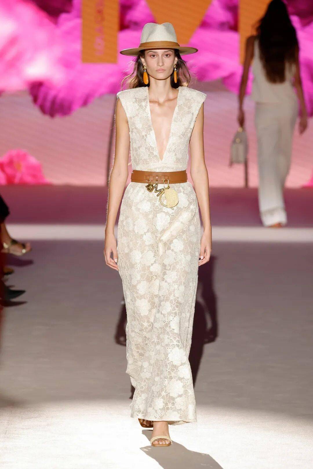 马术元素重构:鞍形腰封、皮革编织搭扣融入度假连衣裙,呼应旅行主题