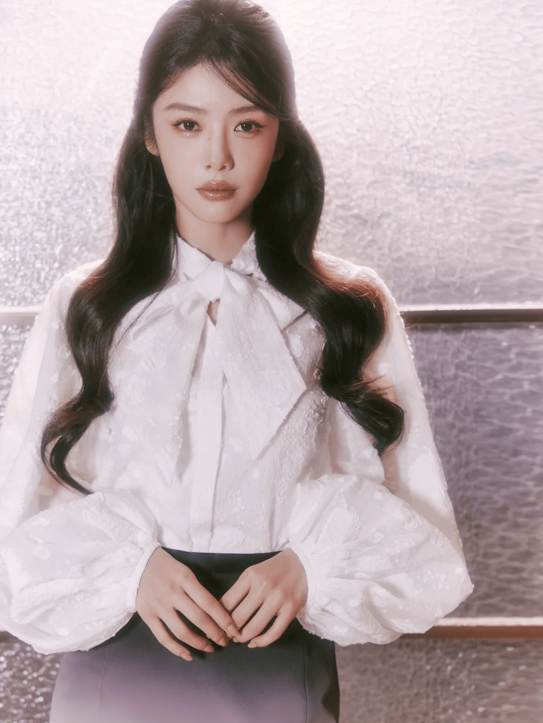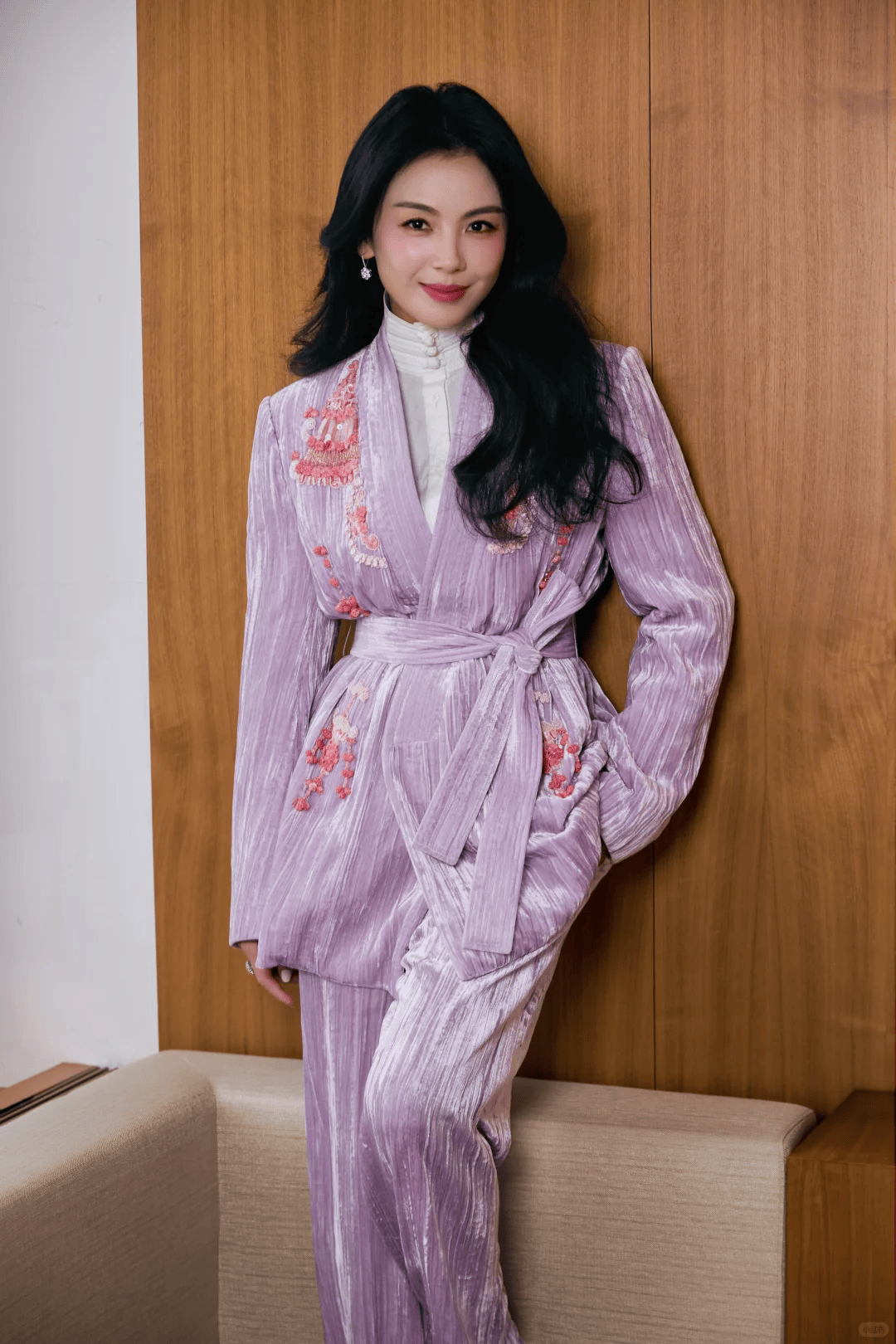 搭配西装时,流畅的波浪线条能中和职场着装的硬朗,增添柔和与气场。
