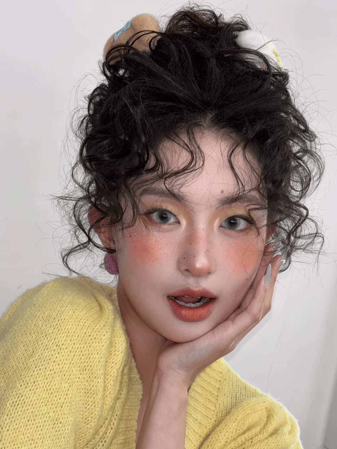 蛋卷丸子头:慵懒凌乱美打造高颅顶,适配港风、法式风,减龄青春有活力。