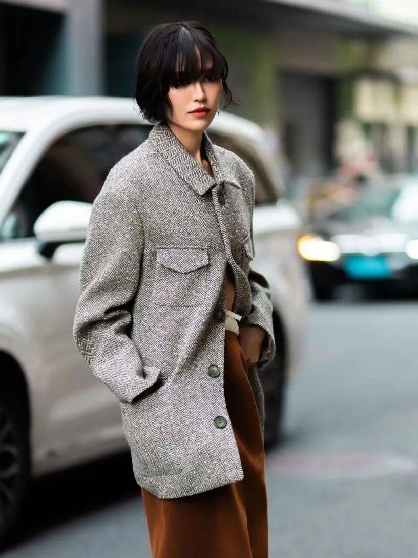 如果想要更气质女人一点,偏分的C翘内扣也很绝!无论是大衣服、厚衣服,都能给人一种轻盈的时髦感。