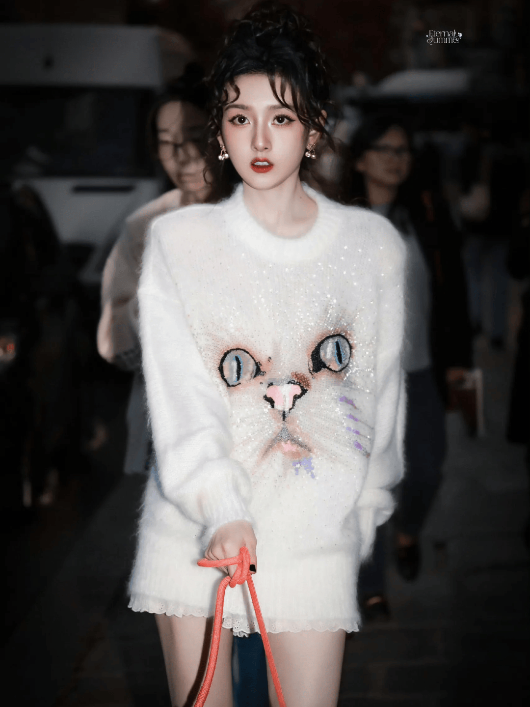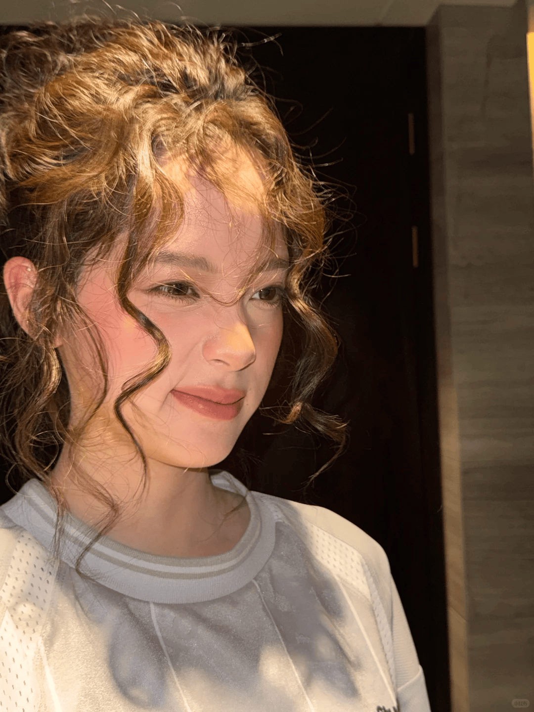 扎的位置刚好在耳尖以上,留出而后一大波弧度的发量,映衬出自然显小的头身比和漂亮的耳骨线条,有种精灵的即视感。