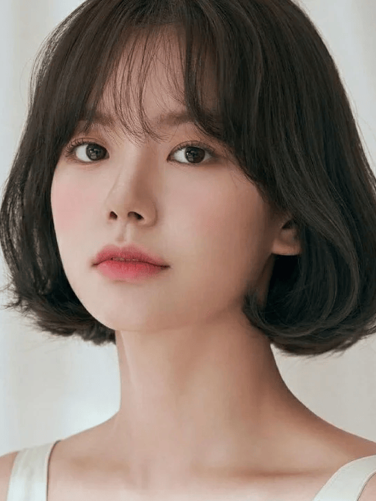 特点:C翘弧度修饰腮帮,齐刘海碎发减龄,偏分设计轻盈时髦。