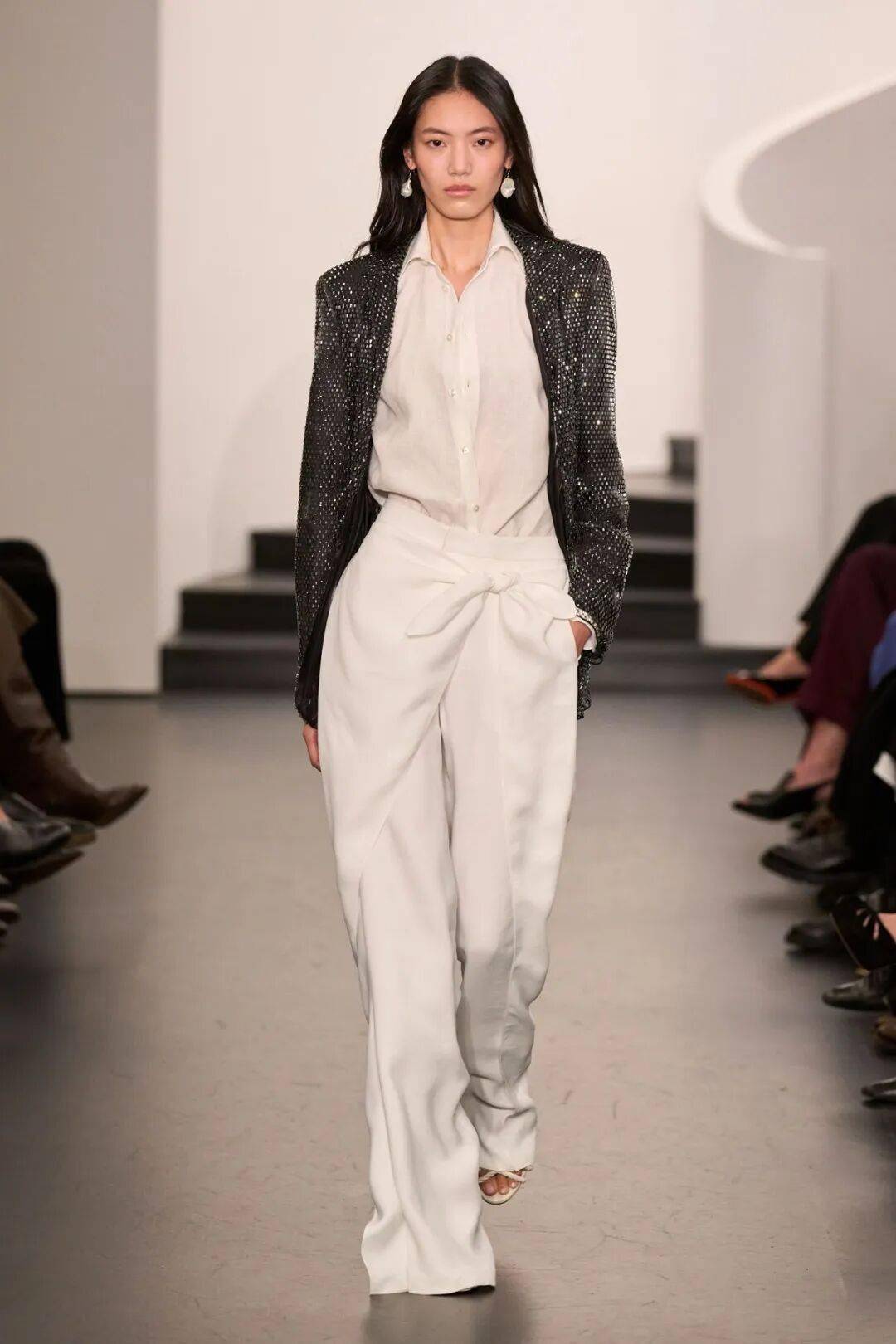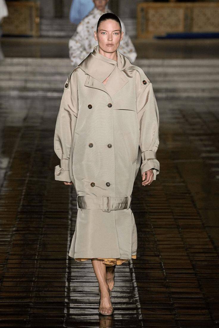 设计师们运用流畅的弧线、圆润的肩部与具有空气感的体积,衬衫温柔的触感包裹身体,而阔型的风衣、飘逸的阔腿裤与雕塑感上衣,则于行进间带出从容气场。