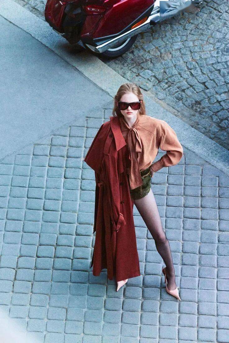 真丝睡衣、条纹睡袍搭配皮衣或奶奶风针织外套,慵懒与精致碰撞。关键点: