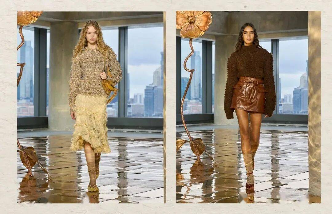 它通过未经修饰的皮革、粗粝针织等搭配精致工艺或面料,创造出强烈的视觉反差,展现出一种既有力量感又不失柔美的独特美学。
