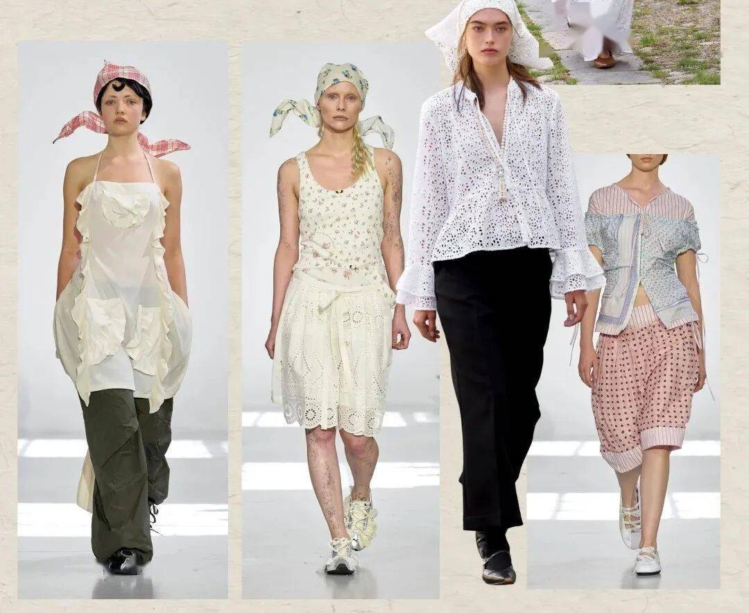连衣裙与宽松罩衫结合褶皱、荷叶边、镂空等设计增添甜美俏皮感,诠释浪漫随性的少女田园美学。