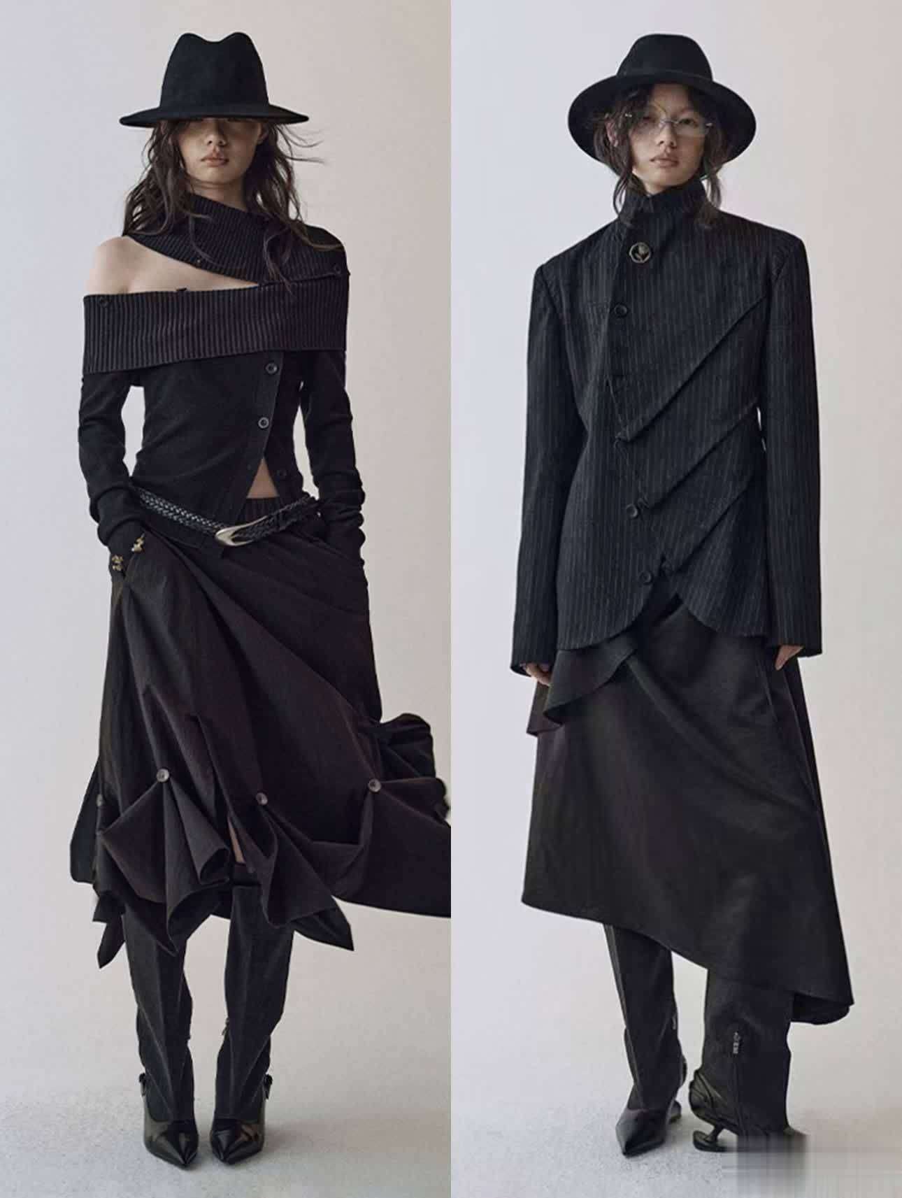 高领配大垫肩的设计,稍有不慎就会穿出 “肩比头宽” 的喜剧效果,毕竟这种建筑感廓形对肩线把控要求极高,理想肩宽得比实际多出3厘米才好看。