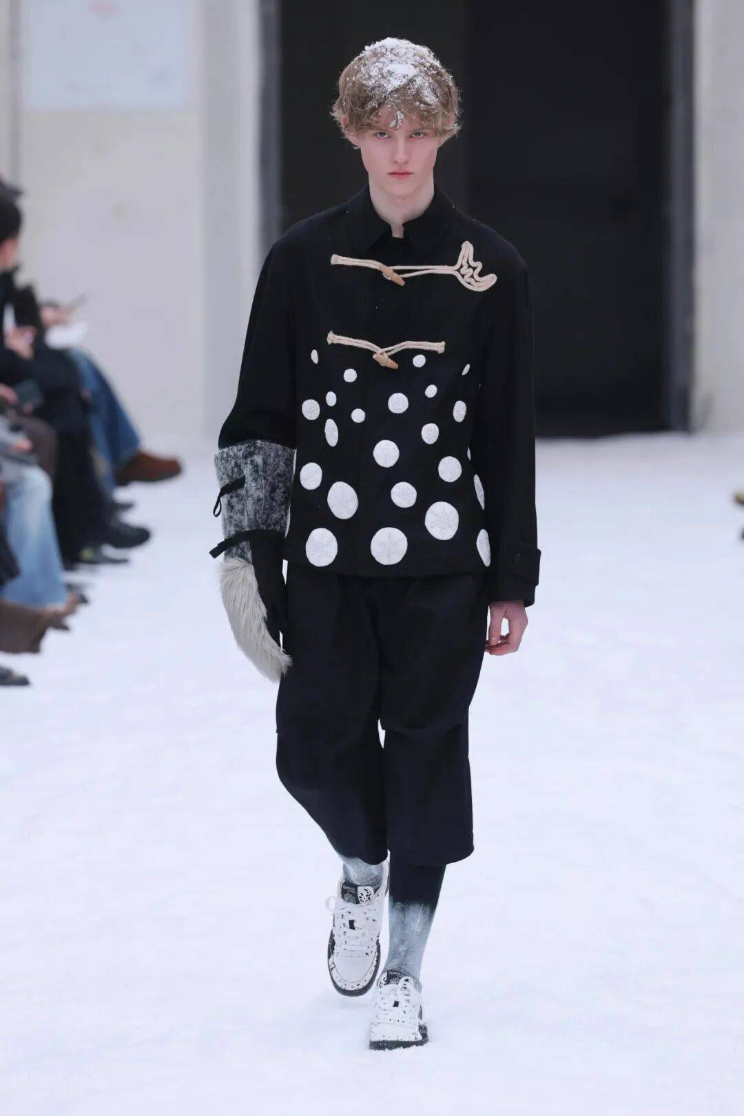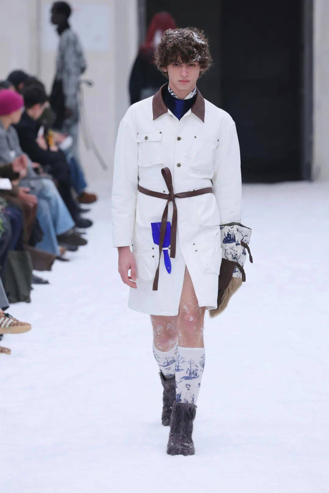把 Shinyakozuka 与 Soshiotsuki 放在同一个舞台上,并不是为了制造风格对冲,而是为了让当代男装的张力本身浮现出来。一边是情绪、叙事与想象力,另一边是结构、历史与系统性思考。它们共同指向的,是对男性气质、实用主义,以及「标准男装答案」的持续松动。
