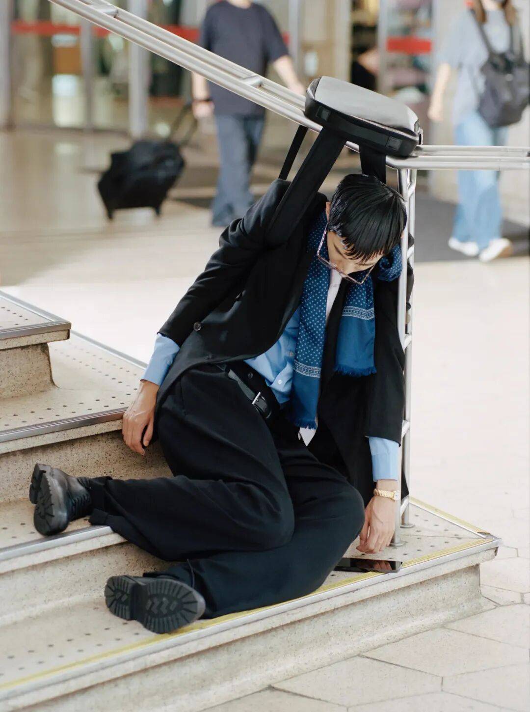 表现形式: 通过过宽比例、不合常理的衣长、柔软松弛的廓形,让衣物仿佛“悬浮”于身体之外,弱化对男性体态的修饰与力量感,营造一种退让、安静的氛围,将情绪推至前景。