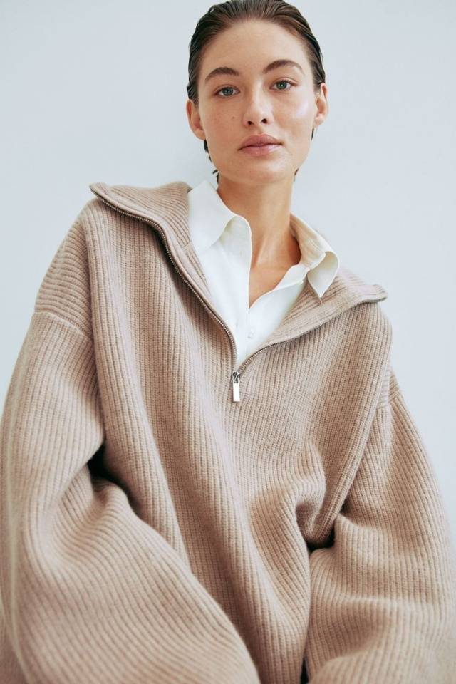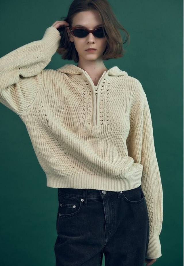 • 黄棕帆布鞋:搭配卷边直筒牛仔和 oversize 棕色毛衣,袜子选择与鞋子同色系,学院风拉满。