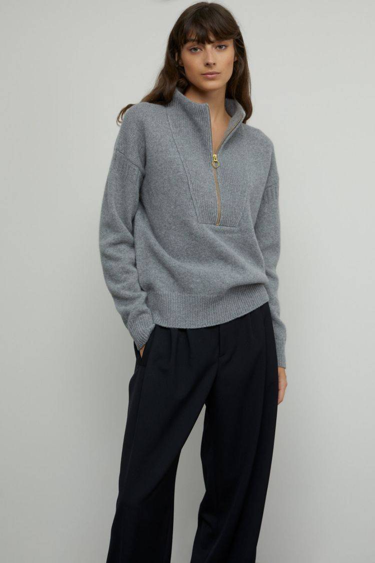 • 蓝棕撞色:灰棕针织开衫+浅蓝牛仔衬衫叠穿,搭配棕咖乐福鞋,倪妮示范的秋日绝美配色。