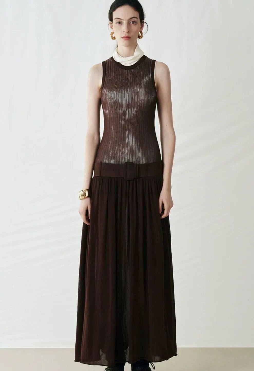 作为大地色系的 “轻氧款”,土褐棕保留了质朴内敛,是这一季的 “中性焦点色”。搭配钟乳白显干净简洁,配深洞灰显经典实用,或是用亮金色饰品点缀,就能穿出复古又高级的都市摩登感。