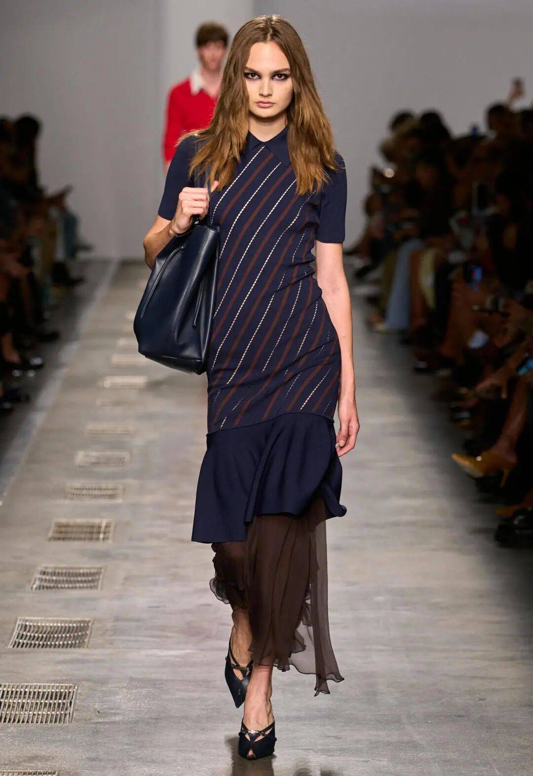 本季,设计师们大胆地融合丰富的色彩和纹理,打造出明亮、充满活力的造型。Jack McCollough 和Lazaro Hernandez 在Loewe 首次推出色块系列,包括风衣、撞色羊绒Polo 衫以及带有喷绘效果的皮革衬衫。Miu Miu 重新诠释了1980 年代的美学,以工厂工人的形象为灵感:丝巾、花卉印花、围裙和奇长裙成为该系列的基调。这些秀场将讽刺意味、精湛工艺和俏皮奢华融为一体,展现了如何同时驾驭各种色彩。