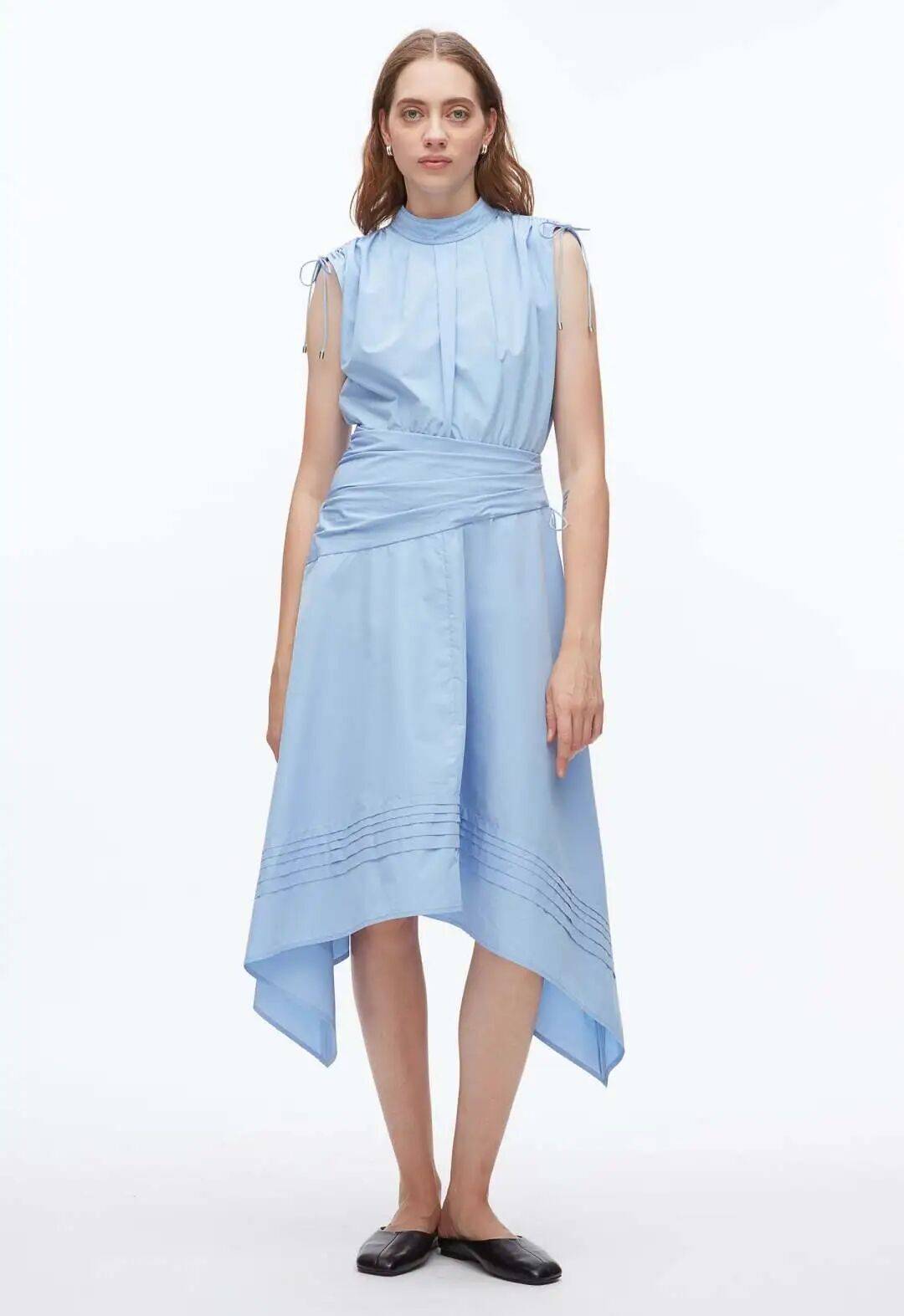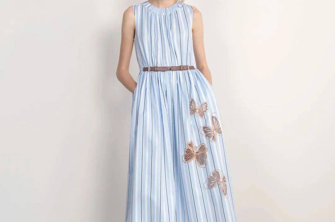 像冰面融水般清透冷调,冰水蓝是春夏的 “降温色”。搭配钟乳白提亮,或是用夜空灰、扁豆棕做对比点缀,既能丰富色彩层次,又能让穿搭兼具 “清透高级” 的视觉记忆,把夏日的凉爽治愈与明媚舒展一并裹进裙装里。