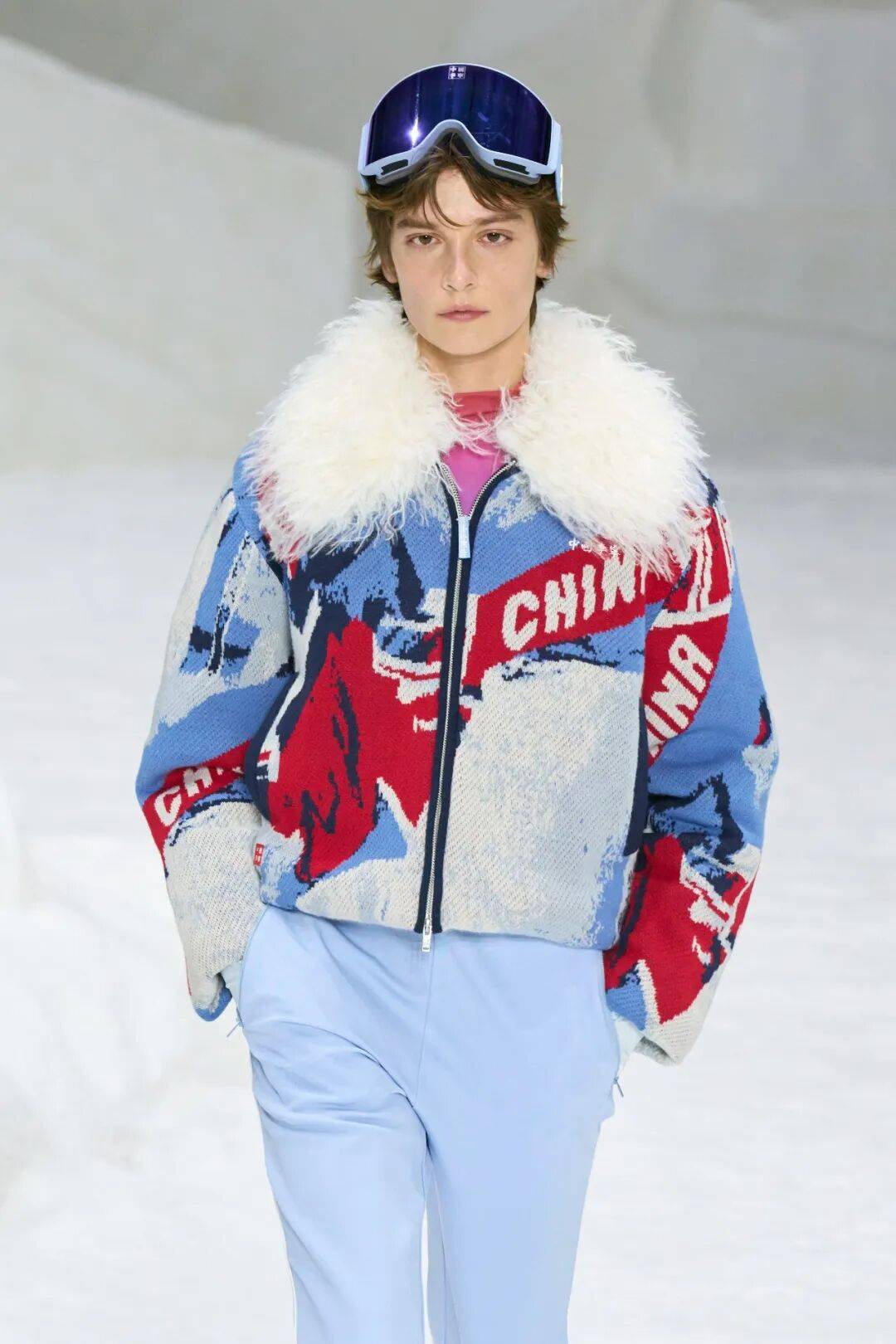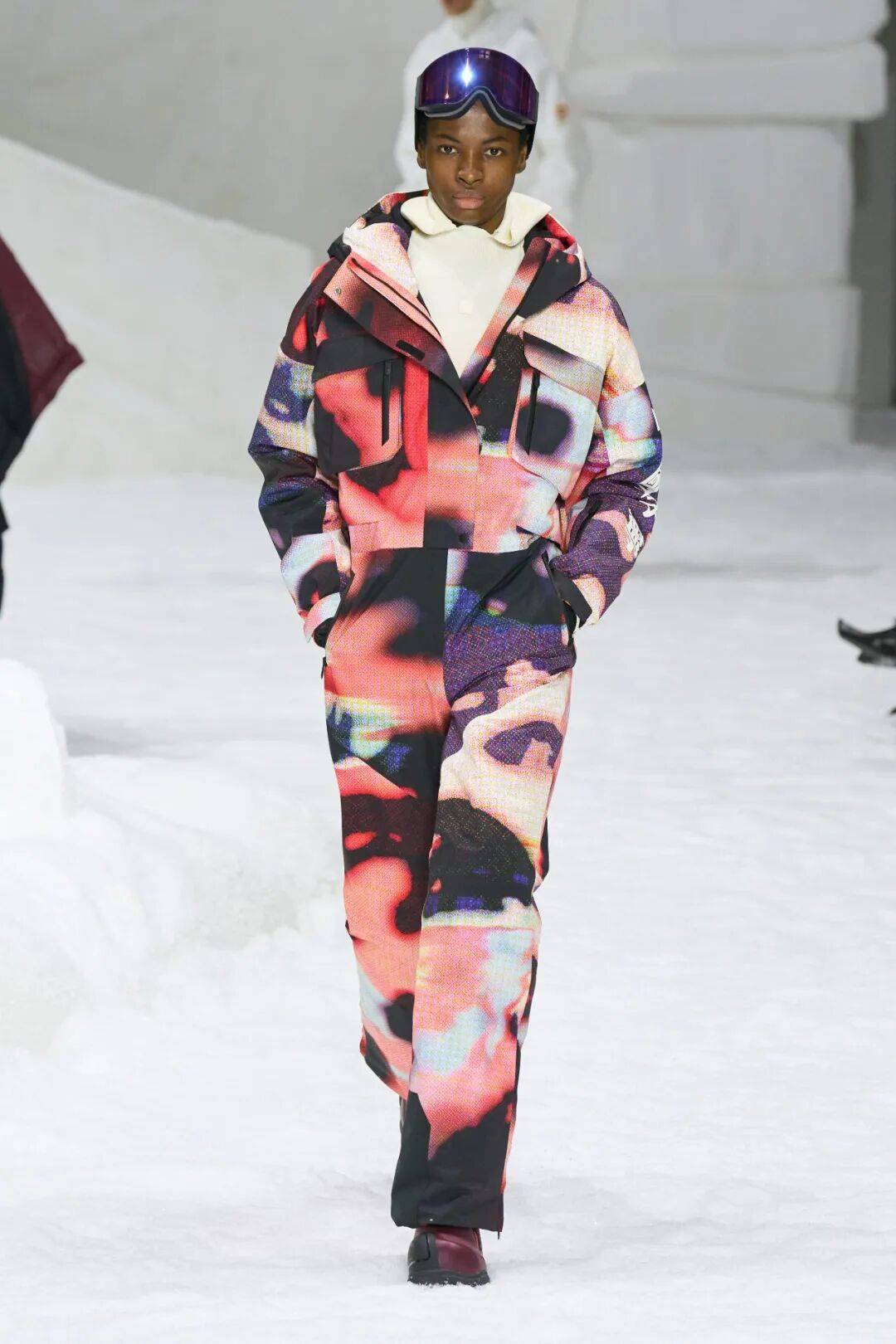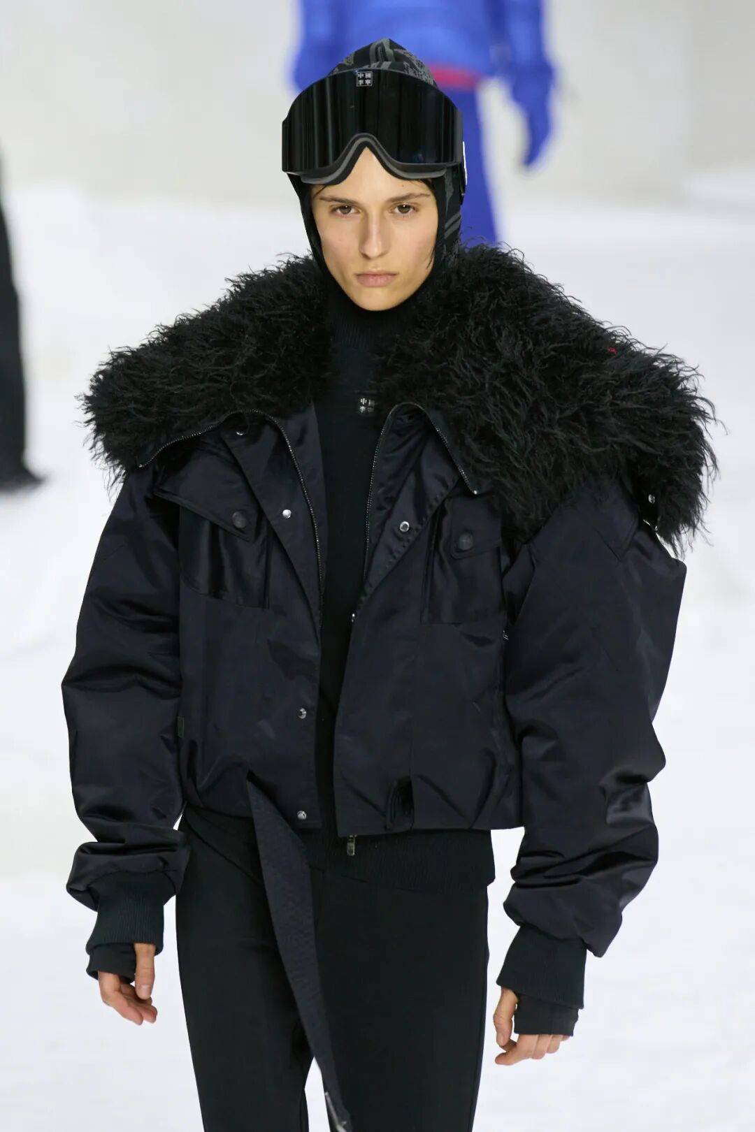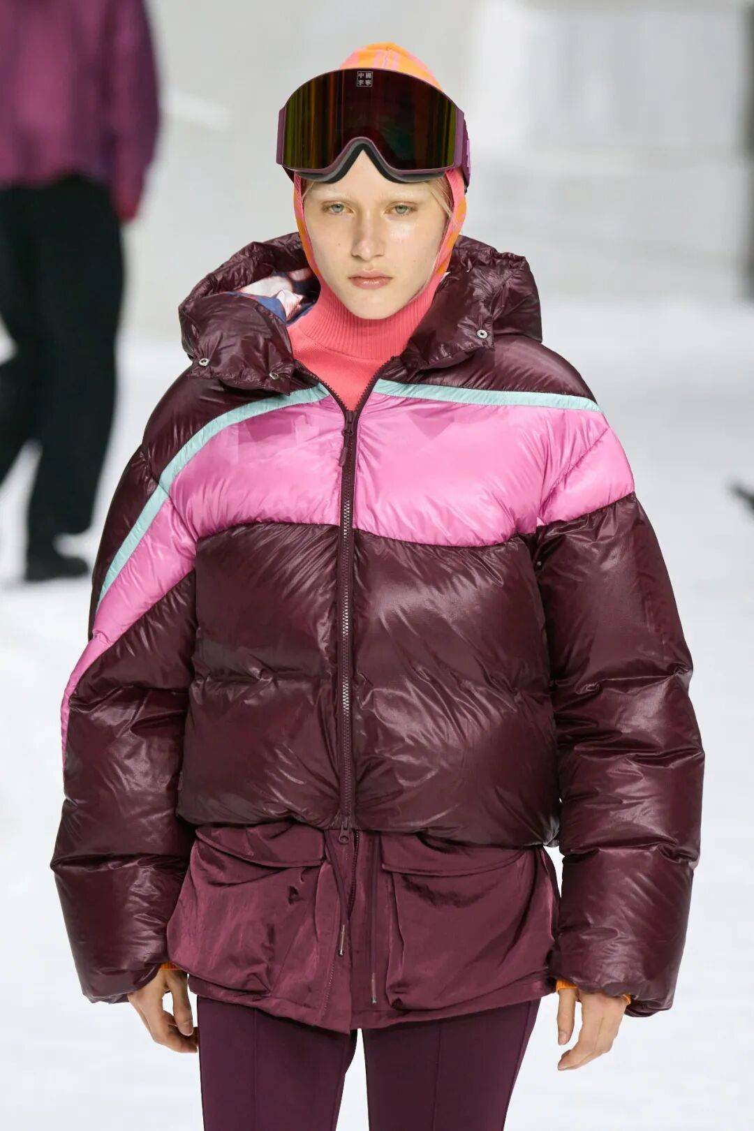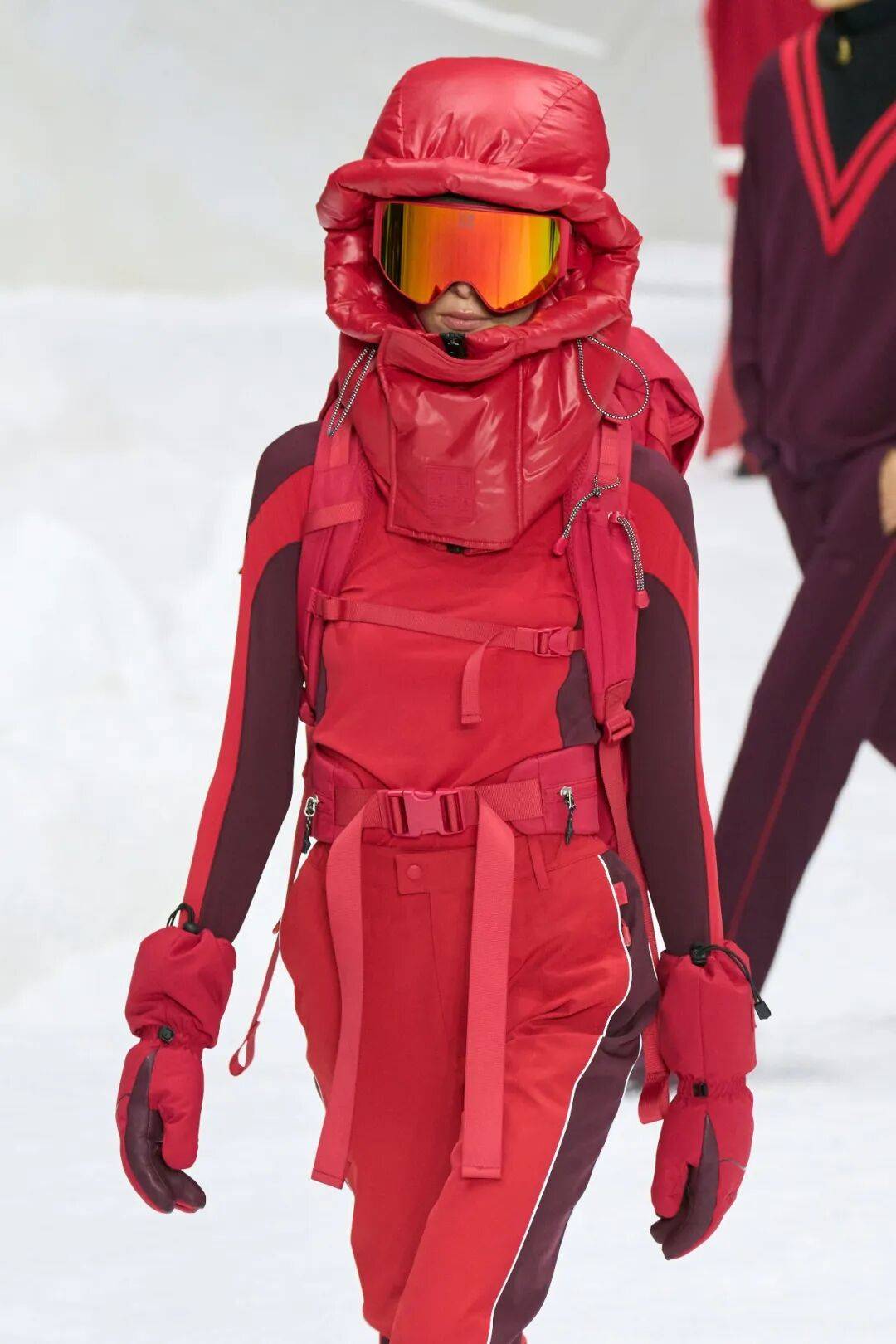 冰川纹理:通过银灰渐变提花面料、半透明TPU压层工艺,模拟冰山裂隙的立体感;服装裁片采用几何切割设计,呼应冰川崩解意象。