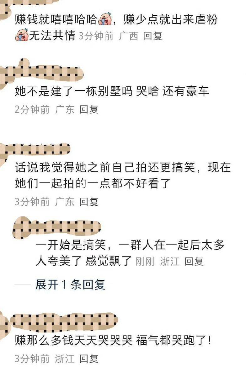 物质对比:网友扒出她哭照中穿LV睡衣、住杭州万元房租豪宅,与其「孤独」言论形成强烈反差,被质疑「无意识炫耀」。