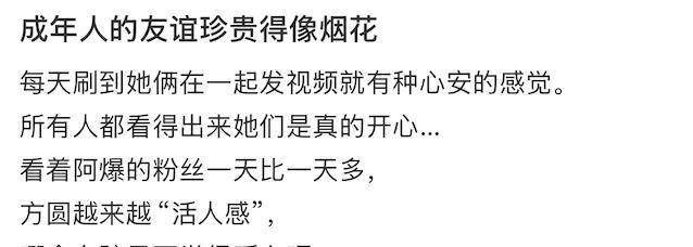 阿爆身边从不缺朋友:与方圆的「神仙友谊」、唤俊的多年陪伴、发小阿英和咪咪的12年支持,甚至新加入的方头明。她的生日、乔迁、跨年等重要场合均被鲜花和祝福包围。网友因此质疑:「身边人来人往,何来孤独?」
