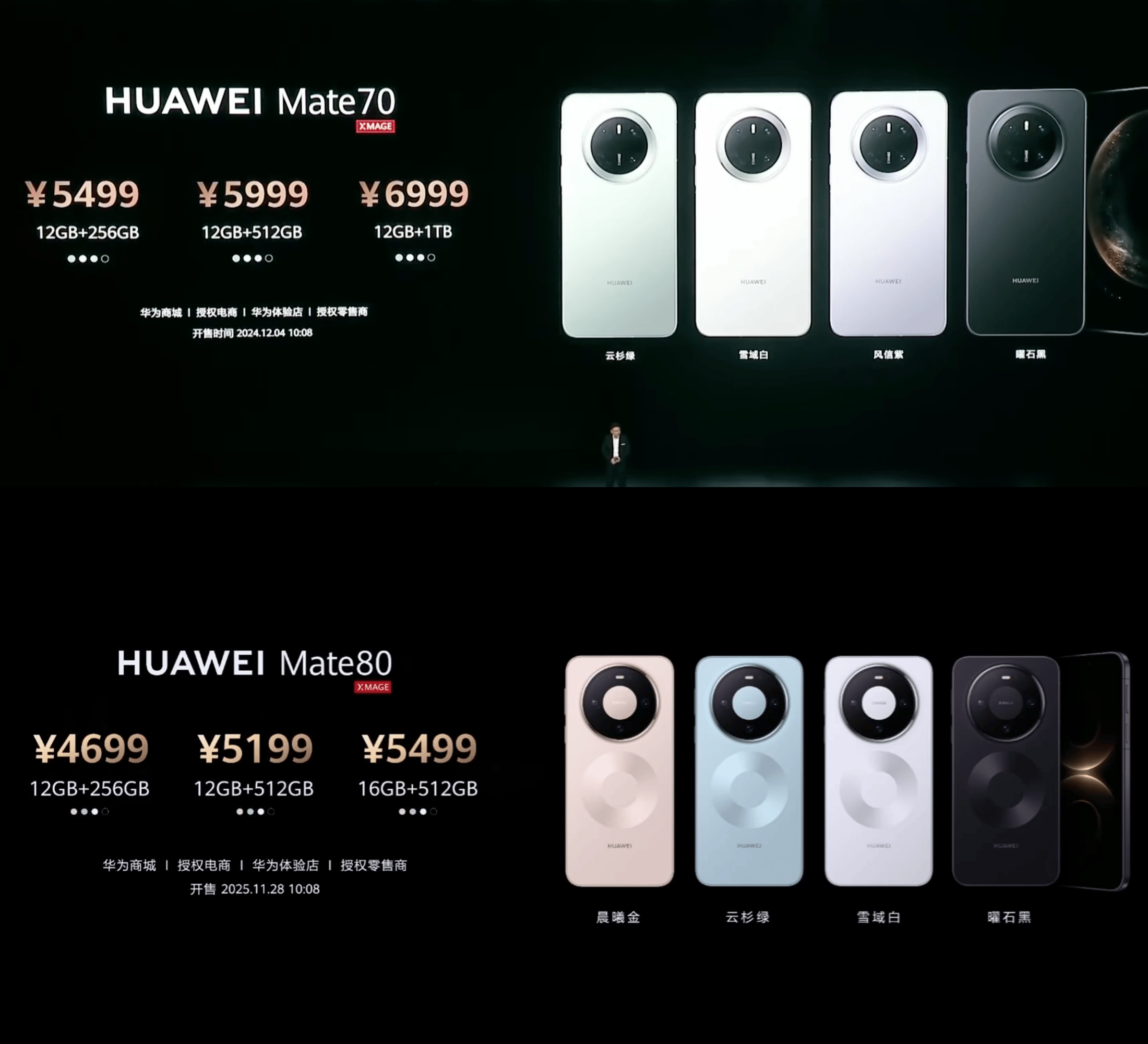 Pura 80系列、Mate 80系列标准版降价超800元,RS非凡大师版“加量不加价”(内存从16GB升至20GB)。