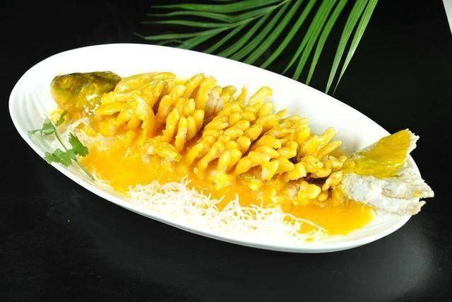食材:草鱼1条、鸡蛋黄2只、核桃300克、姜汁30克、橙汁100克、吉士粉30克、蜂蜜50克、冰糖30克
