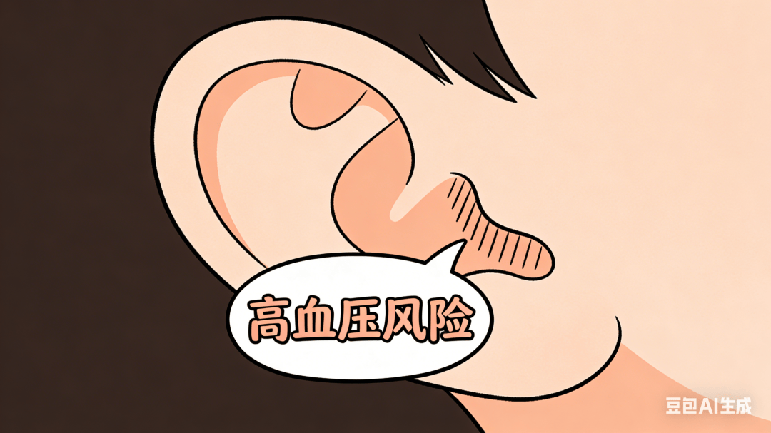 当血管长期承受高压,微循环变差,耳垂这个末梢部位就会因血液循环受阻而形成折痕。研究表明,耳垂折痕患者发生冠脉狭窄的概率较常人增加约2-3倍。
