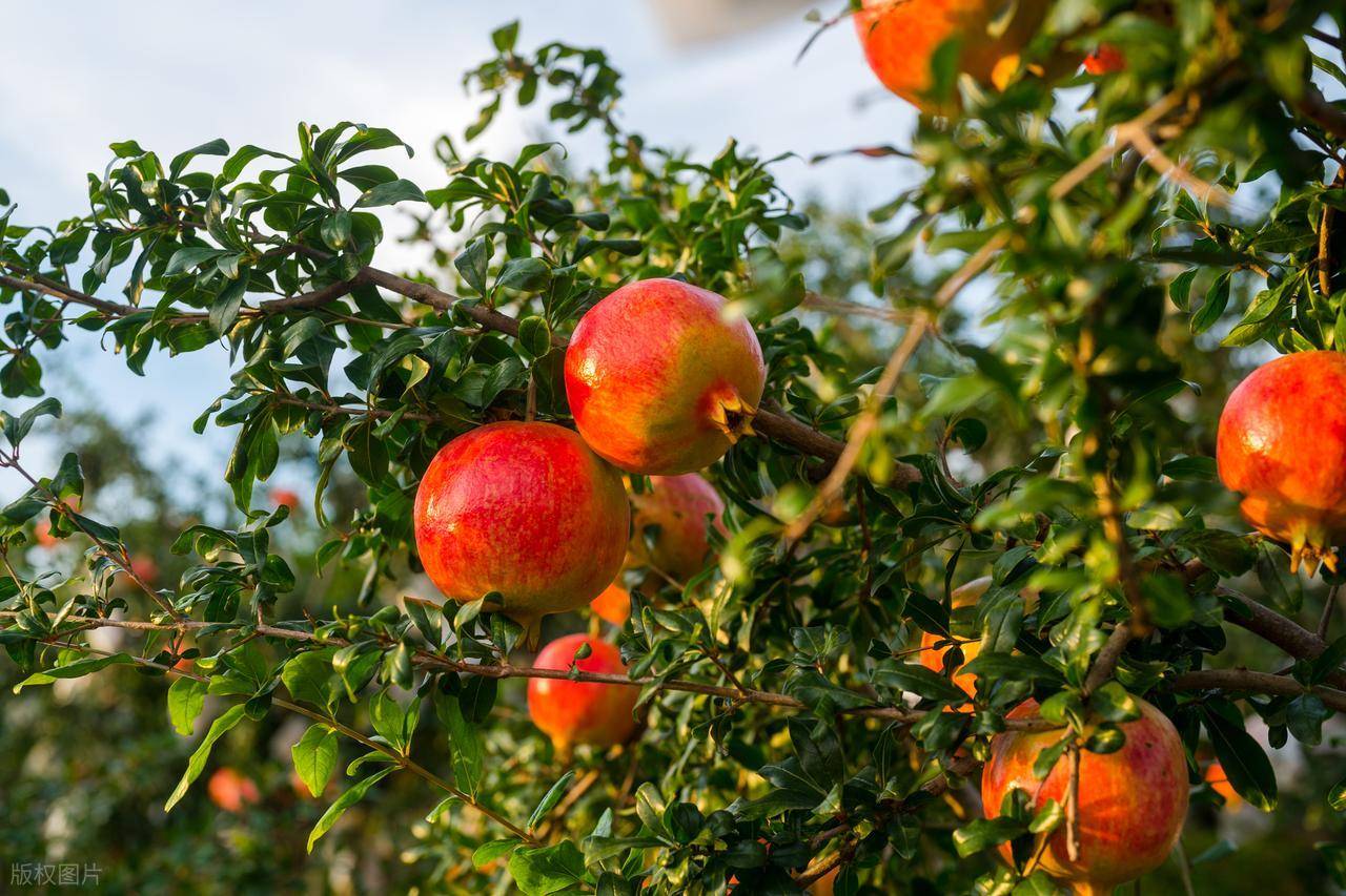 第三种是寓意多子多福的石榴树。石榴果实内含有大量籽粒,自古就被视为多子多孙的象征。唐代诗人李商隐有诗云:"榴枝婀娜榴实繁,榴膜轻明榴子鲜。"石榴树春夏开花,花色艳丽;秋季结果,果实饱满,极具观赏价值。在传统文化中,石榴常被用作婚礼的装饰,寓意新人早生贵子。从实用角度看,石榴果实营养丰富,具有很高的食用和药用价值。